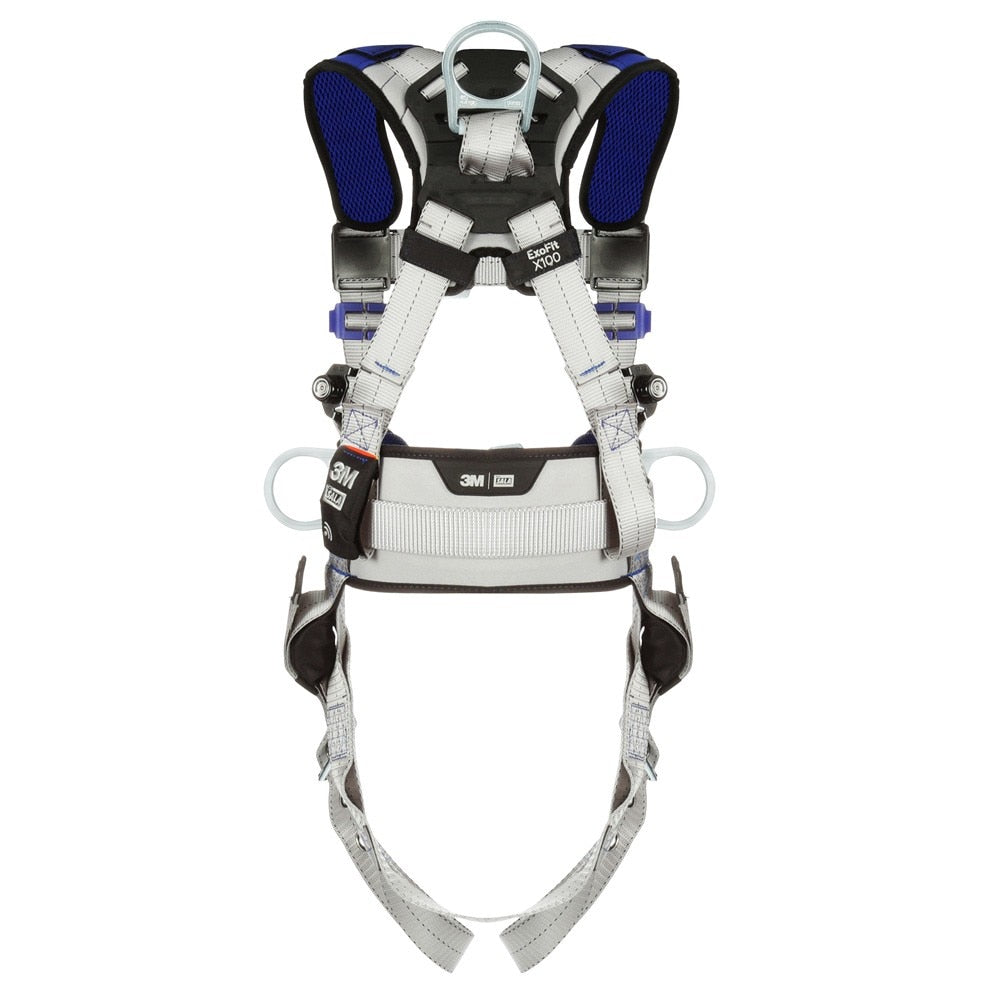 | Specifications Met | ANSI Z359.11, OSHA 1910.140, OSHA 1926.5023M™ DBI-SALA® ExoFit™ X100 Comfort Construction Positioning Safety Harness is equipped with aluminum back and hip D-ring locations. The X100 comfort harness is built with 6,000lb polyester webbing, nylon/polyester hybrid comfort padding and robust alloy steel hardware. The anti-slide back D-ring plate design helps reduce dorsal D-ring slide and enables a convenient adapter location to connect personal SRLs. Available in Small, Medium, Large, X-Large, 2X-Large sizes. |
