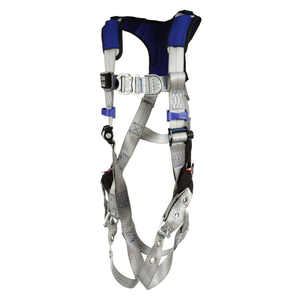 | Specifications Met | ANSI Z359.11, OSHA 1910.140, OSHA 1926.5023M™ DBI-SALA® ExoFit™ X100 Comfort Vest Climbing Safety Harness is equipped with aluminum front and back D-ring locations. The X100 comfort harness is built with 6,000lb polyester webbing, nylon/polyester hybrid comfort padding and robust alloy steel hardware. The anti-slide back D-ring plate design helps reduce dorsal D-ring slide and enables a convenient adapter location to connect personal SRLs. Available in Small, Medium, Large, X-Large, 2X-Large sizes. |