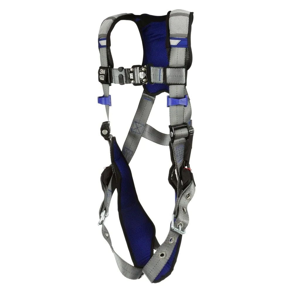 | Specifications Met | ANSI Z359.11, OSHA 1910.140, OSHA 1926.5023M™ DBI-SALA® ExoFit™ X200 Comfort Vest Safety Harness is equipped with aluminum back D-ring locations. The X200 comfort harness is built with 6,000lb polyester webbing, nylon/polyester hybrid comfort padding and robust alloy steel hardware. Dorsal D-ring connections are faster and easier with the stand-up back D-ring. The anti-slide back D-ring plate design helps reduce dorsal D-ring slide and enables a convenient adapter location for connecting personal SRLs. There are also locking torso-adjustment and quick-connect buckle options available to help your team maintain a safe and comfortable harness fit. Available in Small, Medium, Large, X-Large,X-Small, 2X-Large sizes. |