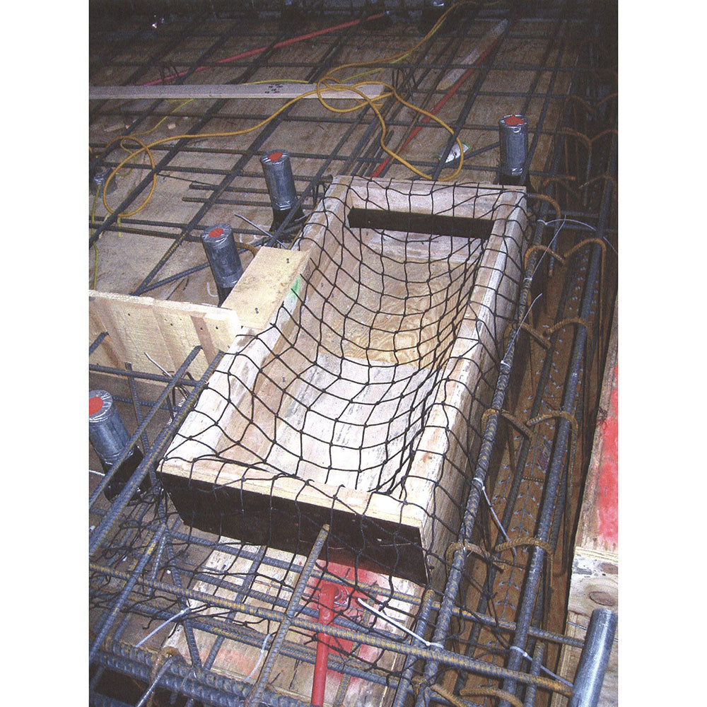 Most construction sites including high-rise structures contain small floor openings such as stairwells or elevator shafts that create fall hazards for workers. A common way to abate the hazard is to cover the openings with planking or plywood which is often improperly fastened or secured creating a false sense of security. Our Pour-In-Place netting system is the solution, providing safe and secure fall protection as well as debris retention for personnel working on the protected floors. The Pour-In-Place netting is sized on-site by the user for a custom fit. It is then easily attached to reinforcing steel using cable ties or tie wires prior to pouring the floor. For greater work site versatility, the system can be positioned over or under opening form work. The netting can also be partially removed for penetrations as the job site changes for added flexibility. Removal is just as fast, simply cut the netting down using a scissors or blade.