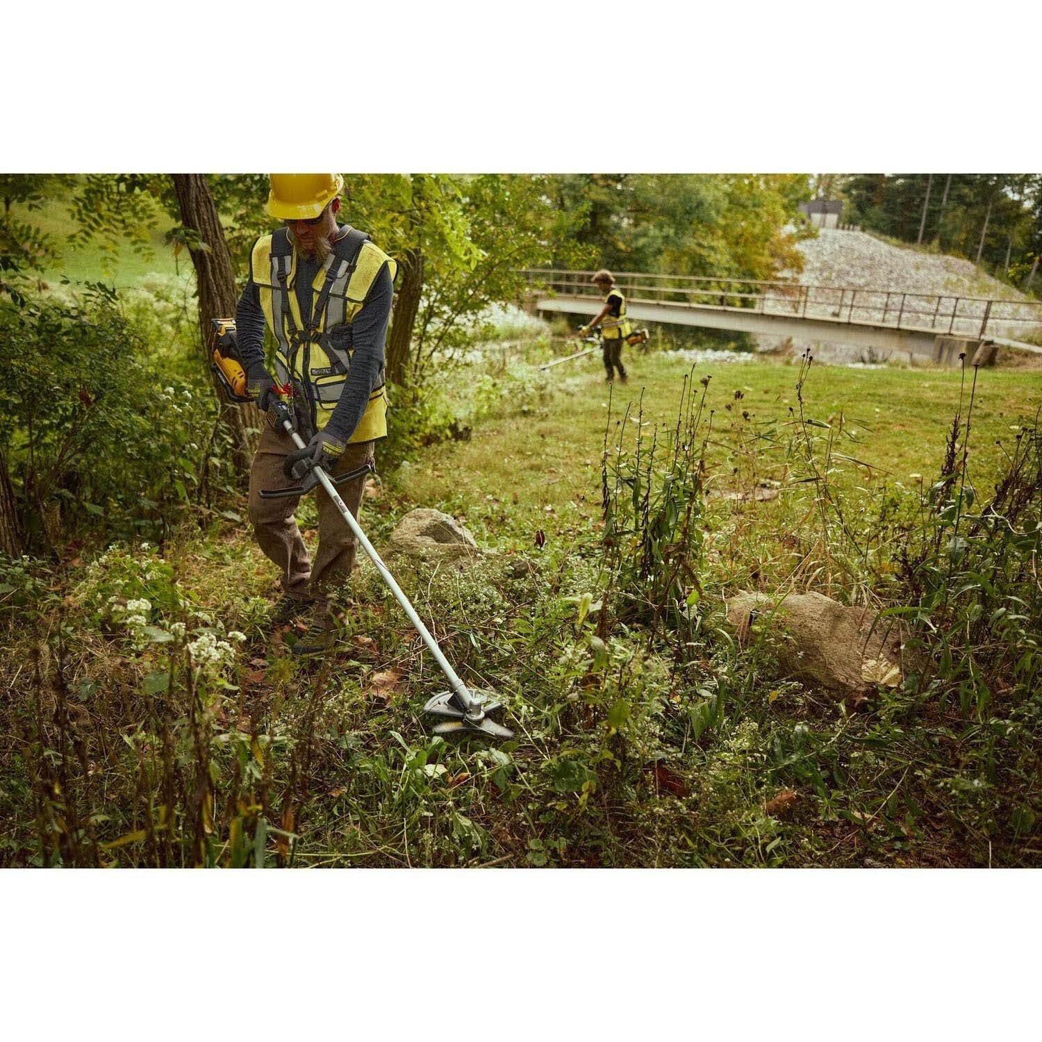 Built for professional landscapers, this 60V MAX 10 in. brush cutter kit delivers gas-like power, long runtime, and comfort with a high-torque brushless motor, LED display, and tri-tip carbide steel blade.