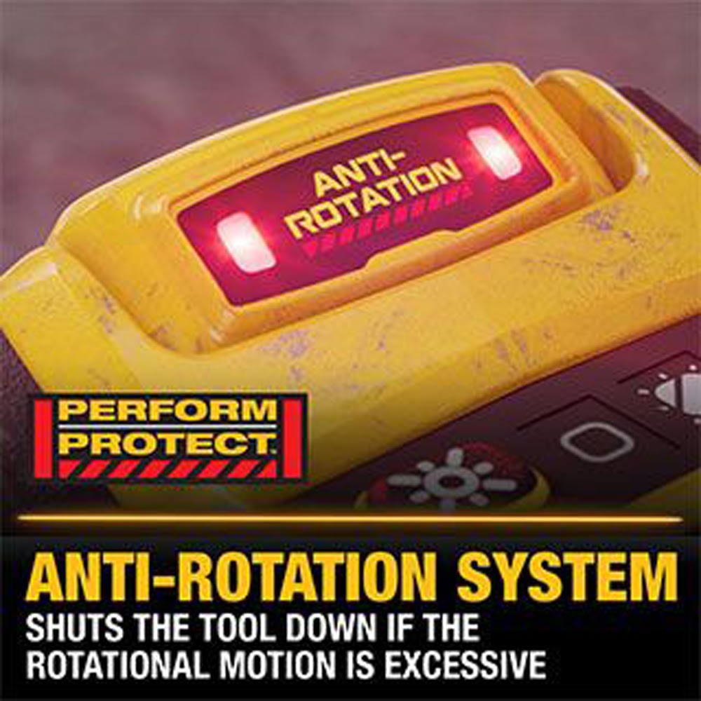 - HELP MAXIMIZE CONTROL - Equipped with the ANTI-ROTATION System that senses the rotational motion of the tool and shuts it down if the motion is excessive. The red LED indicator illuminates when the ANTI-ROTATION System is engaged.