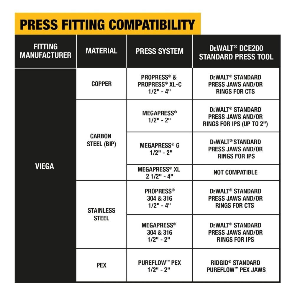 Model Compatibility | DEWALT® 20V MAX* Press Tool (DCE200) |