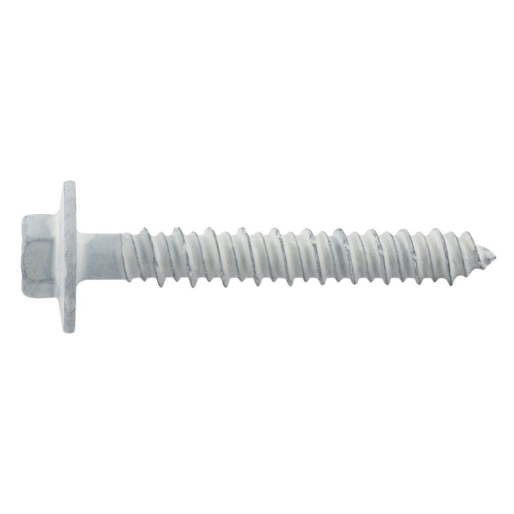 ULTRACON®+ HEX FLANGE HEAD - WHITE CONCRETE SCREW ANCHOR. The UltraCon+ fastening system is a complete family of screw anchors for light to medium duty applications in concrete, masonry block, brick, and wood base materials. The UltraCon+ is fast and easy to install and provides a neat, finished appearance. The UltraCon+ screw anchor is engineered with matched tolerance drill bits and installation tools designed to meet the needs of the user and also provide optimum performance. The UltraCon+ features a gimlet point for self-drilling into wood base materials without pre-drilling. The UltraCon+ screw anchor is available in carbon steel with a Stalgard coating in several colors. Head styles include a slotted hex washer head, Phillips flat head, Phillips Trimfit flat head and Hex flange head.