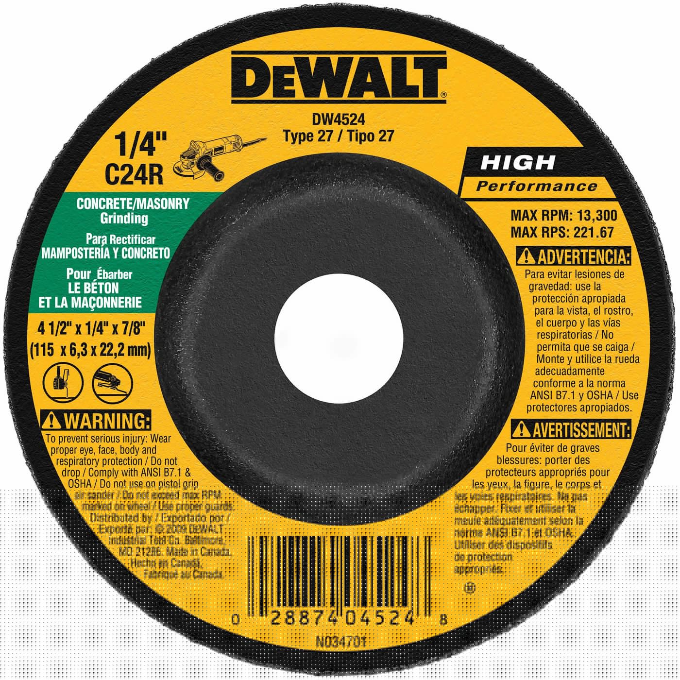 DeWalt DW4524 4-1/2" x 1/4" x 7/8" Concrete/Masonry Grinding Wheel