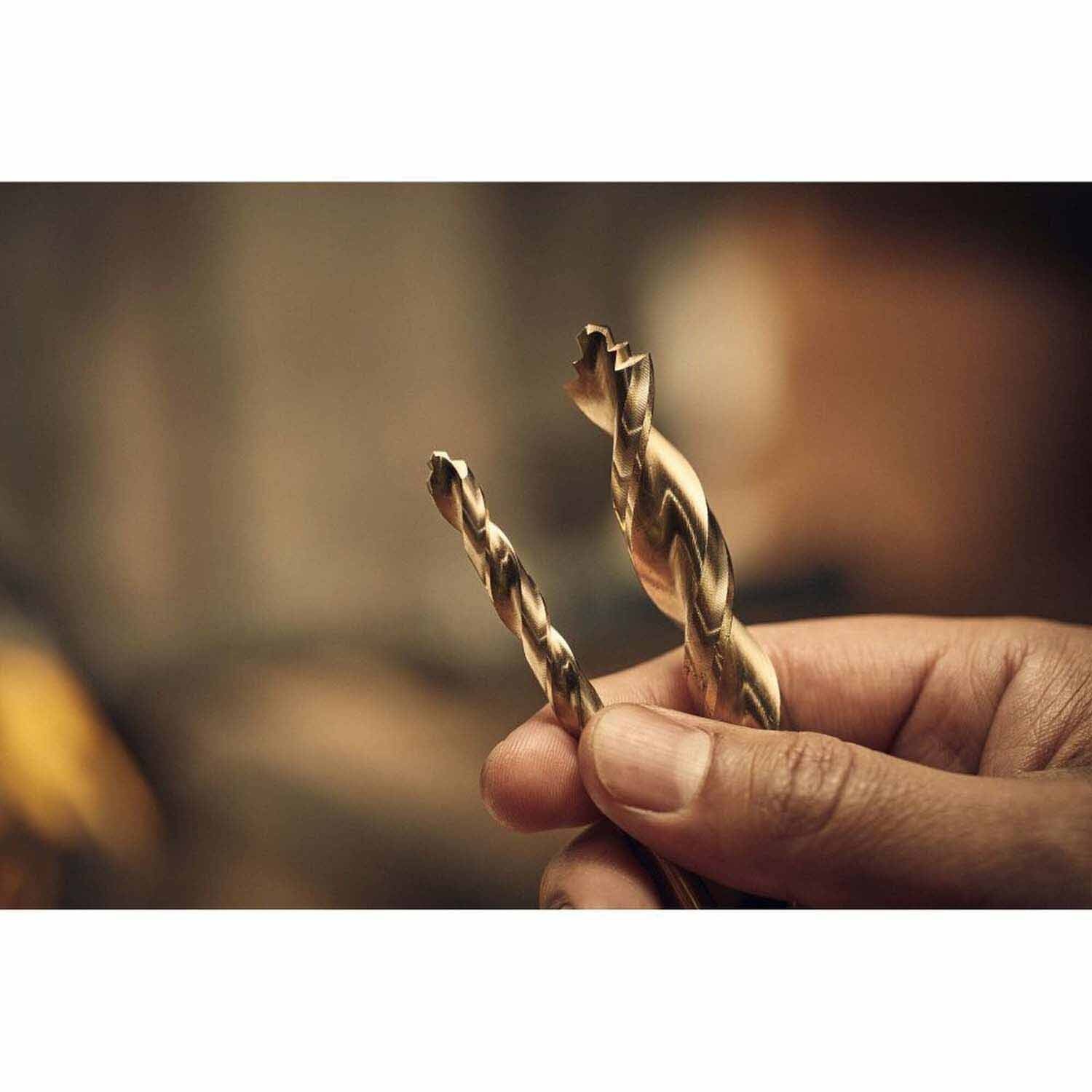 Power through stainless steel and other hard metals with ease using DEWALT ELITE SERIES Cobalt Alloy Steel drill bits. The high-quality jobber length bits in this line-up feature tips designed to start on contact and minimize walking. With up to 2X longer life vs. Milwaukee* (select sizes, see chart below), these bits have been engineered for durability in hard metals and stainless steel.
