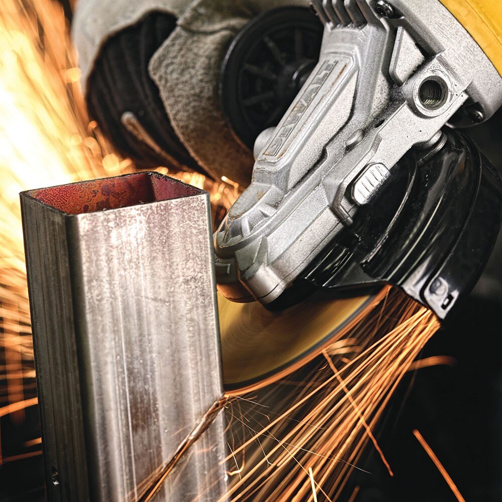 DeWalt DWE4120FN 4-1/2 IN. - 5 IN. FLATHEAD PADDLE SWITCH SMALL ANGLE GRINDER WITH NO LOCK-ON. This Small Angle Grinder w/ No Lock-On has a powerful 9 Amp motor for fast material removal, a slim design to add comfort for extended use, and a low-profile construction for operating in tight spaces.