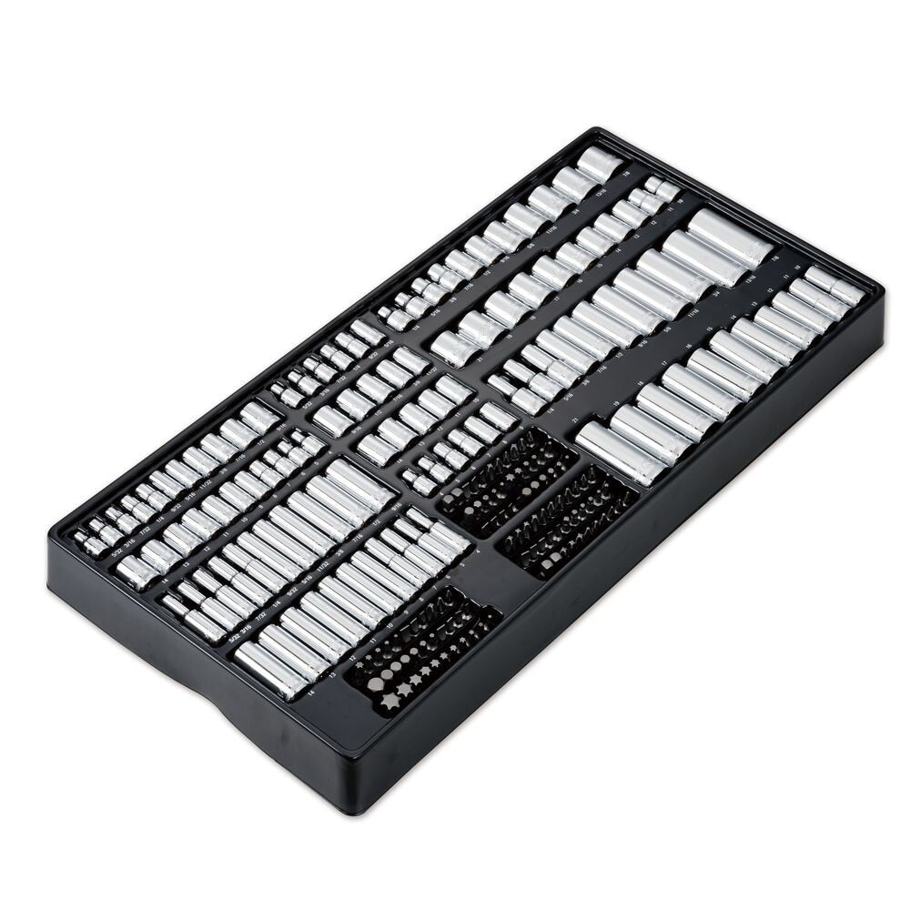 This 341 pc. Mechanics Tool Set has a comprehensive offering of ratchets, sockets, wrenches, and accessories for a variety of uses. The included sockets offer DirectTorque™ Technology for greater contact with the flat surface area of fasteners. The three 72-tooth count ratchets allow for a 5-degree arc swing for maneuverability in restricted areas. These mechanics tools are housed in three trays to stay organized in your garage or truck.