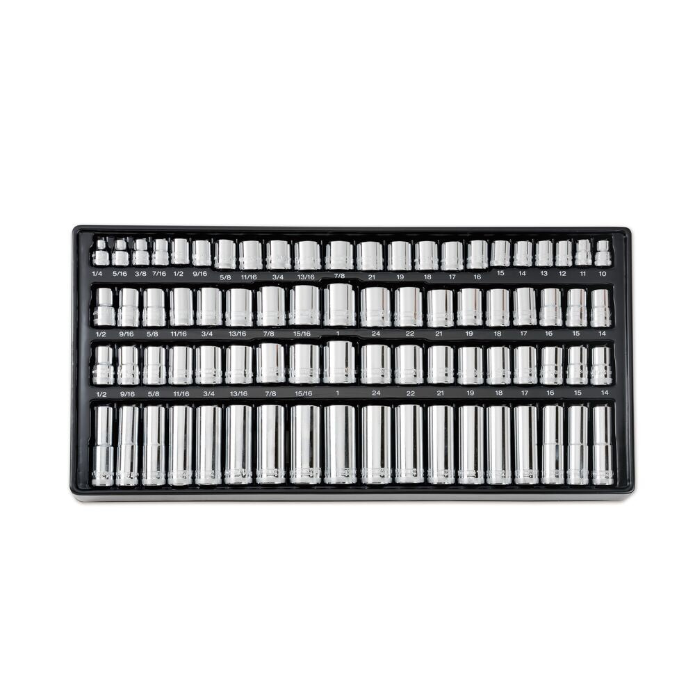 - (1) 3/8" Drive 6 pt. Deep Sockets: (SAE) – 1/4", 5/16", 3/8", 7/16", 1/2", 9/16", 5/8", 11/16", 3/4“, 13/16”, 7/8”, (MM) – 10mm, 11mm, 12mm, 13mm, 14mm, 15mm, 16mm, 17mm,