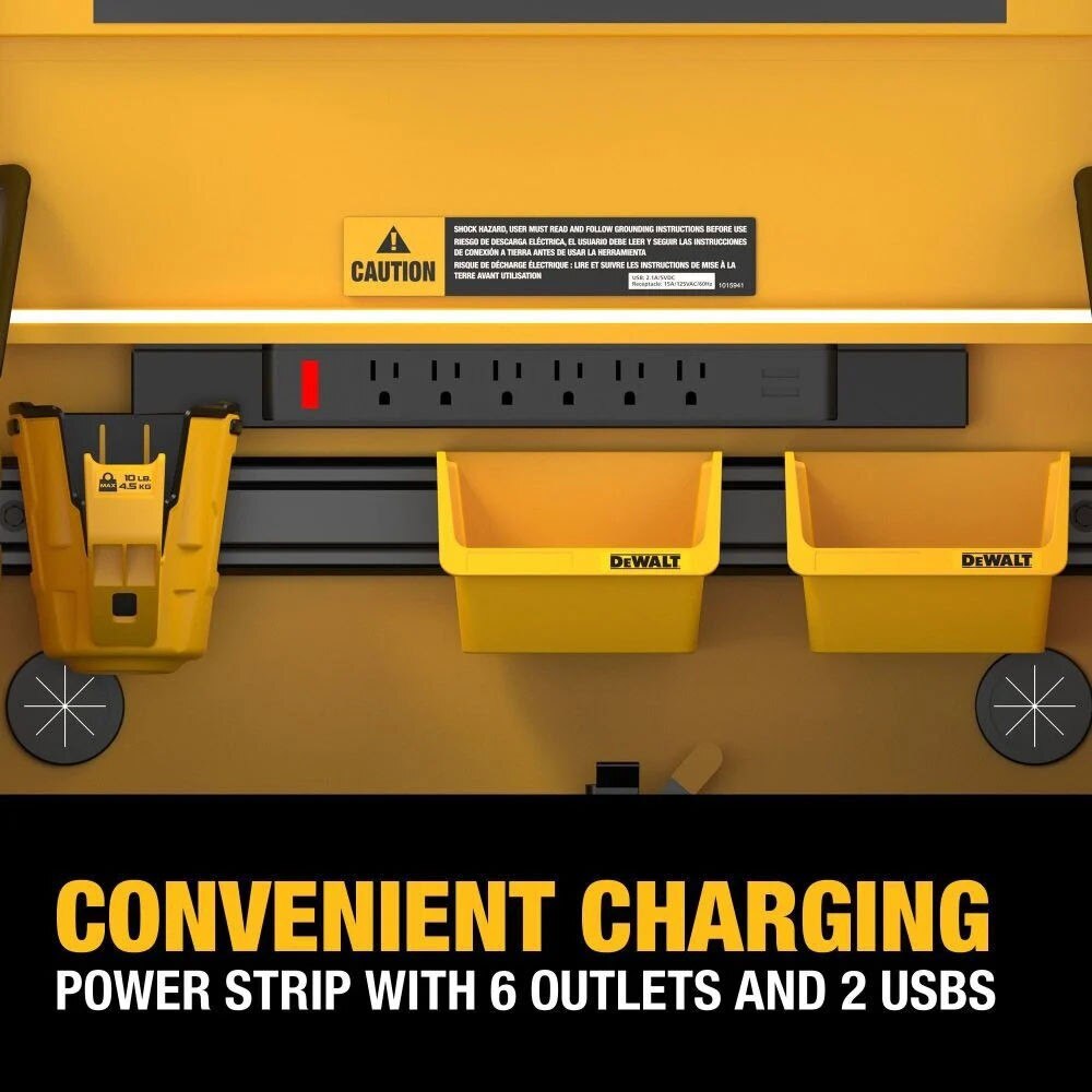 Get tough on organization with this 26 in. 4-Drawer Tool Chest, a part of the DEWALT Metal Storage Solution. Featuring full-extension soft-close, ball-bearing drawer slides, 6 in. x 2 in. over-toe locking casters, and a 18/20 gauge steel construction, this mobile workstation helps maximize space and versatility for demanding jobs. Proudly made in the USA with global materials, this 4-Drawer Tool Chest is engineered with an internal keyed locking system that helps safeguard tools. With the included metal rail, power tool holster, and 2-pack of bins, this chest can be customized to suit the needs of your workspace.