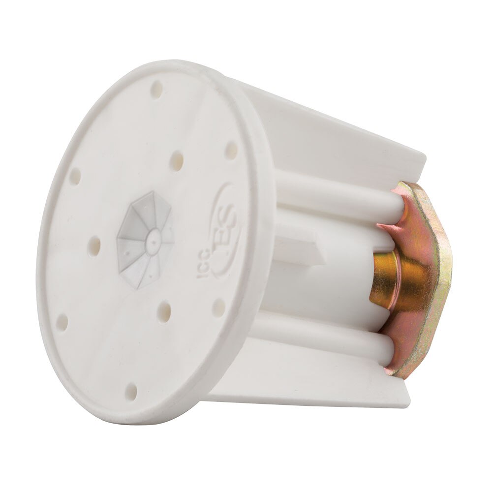 Wood-Knocker II+ and Pan-Knocker II+ concrete inserts are installed onto forms used to support newly poured concrete floor slabs, roof slabs or walls. The concrete inserts are specifically designed to provide hanger attachments for mechanical, electrical, plumbing (MEP) and fire protection. When the forms are stripped, the color-coded flange is visibly embedded in the concrete surface. The inserts allow the attachment of steel threaded rod or threaded bolts in sizes ranging from 1/4" to 3/4" in diameter, including a 1/4-3/8" and 3/8-1/2" and 1/4-3/8-1/2" multi version. The hex impact plate offers resistance to rotation within the concrete as a steel threaded rod or threaded bolt is being installed.