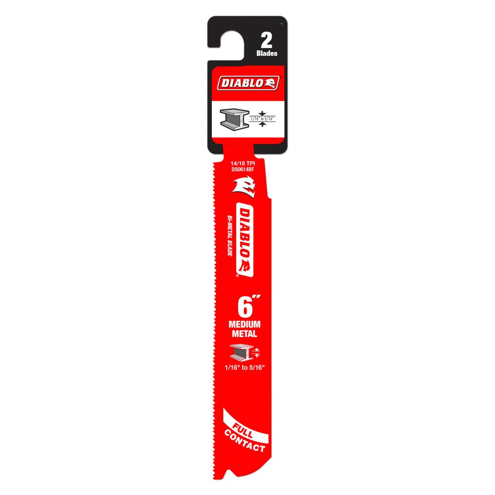 Diablo DS0614BF2 6" Bi-Metal Recip Blade for Medium Metal Cutting, 2 Pack