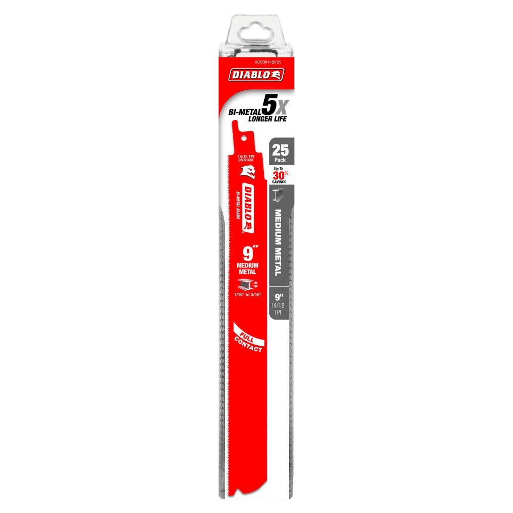 Diablo DS0914BF25 9" Bi-Metal Recip Blade for Medium Metal Cutting, 25 Pack