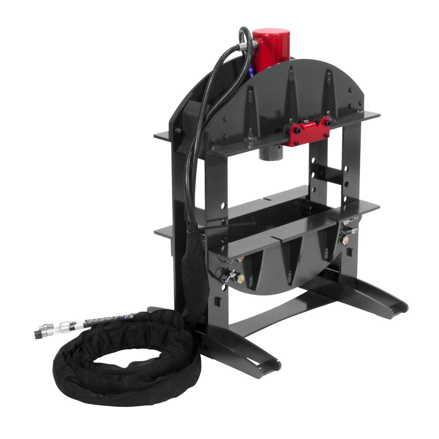 Our 20 Ton Shop Press may be small but it's no lightweight. Smooth and precise, heavy-duty and versatile, the unique open side design allows for material to pass through. Power it up with an Edwards Ironworker with factory installed Hydraulic Accessory Pack or an Edwards Porta Power 5HP, 2750 psi portable power unit. Check out our 12" Press Brake Tooling, bump-die tooling, the 6-Piece Press Tooling Set and the Press Brake Back Gauge.