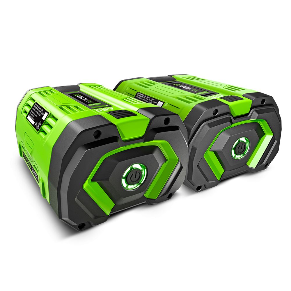 The EGO 56V 2x 12.0Ah ARC Lithium™ Battery uses industry-leading technology to deliver Power Beyond Belief™. Its patented ARC Lithium™ design keeps the battery from overheating by pushing heat away so your equipment runs longer at full power. Its durable, shock-resistant design protects batteries from drops and the elements. Intelligent power management monitors and optimizes each individual battery cell to maximize power, performance, and runtime. Each 12.0Ah battery features a fuel gauge with built-in indicator lights that show how much runtime is remaining in 20 percent increments. Each 12.0Ah battery fully charges in 75 minutes with the EGO POWER+ Turbo Charger (CH7000), 90 minutes with the Rapid Charger (CH5500), 160 minutes with the 320W Charger (CH3200), and 230 minutes with the Standard Charger (CH2100). Two 12.0Ah batteries will fully charge in 180 minutes with the EGO Power+ Dual-Port Charger (CH2800D). With the industry’s most advanced battery technology, every EGO tool delivers or exceeds the power and performance of gas without the noise, fuss, or fumes.