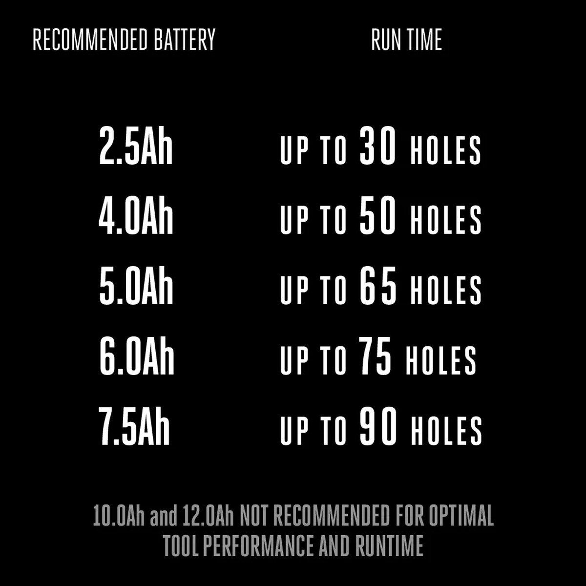 • Bores up to 50 holes on a single charge with included 56V 4.0Ah ARC Lithium™ battery