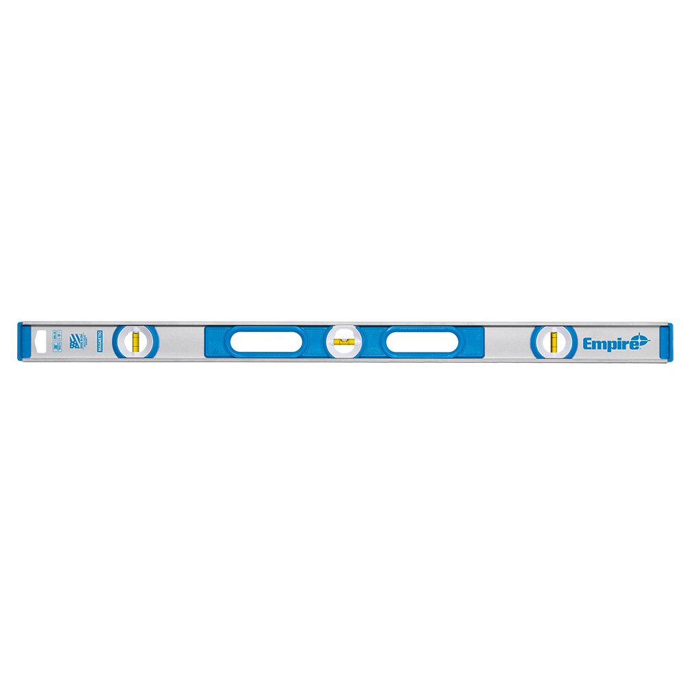 As the dominant market leader in levels, squares, and marking products, Empire Level is committed to delivering innovative solutions designed to satisfy the needs of the modern jobsite. The 500 series I-Beam levels offer superior performance in all key areas of user needs and functionality. Exclusive high contrast vial surrounds make viewing easier in all light conditions and feature impact resistant acrylic mono vials for reliable durability. An all metal frame offers superior durability and protects long life accuracy to within .0005 in. per in. in all working positions. Each level is equipped with impact-resistant end caps to withstand the harshest jobsite conditions. For added utility, the 500 series features a top-read window for clear overhead viewing & has built-in molded grip zones for enhanced portability. Magnetic models include a high-strength continuous magnetic edge which provides users maximum holding power when measuring door frames, steel studs, ferrous pipe and other common metal-working applications. Made in the USA.