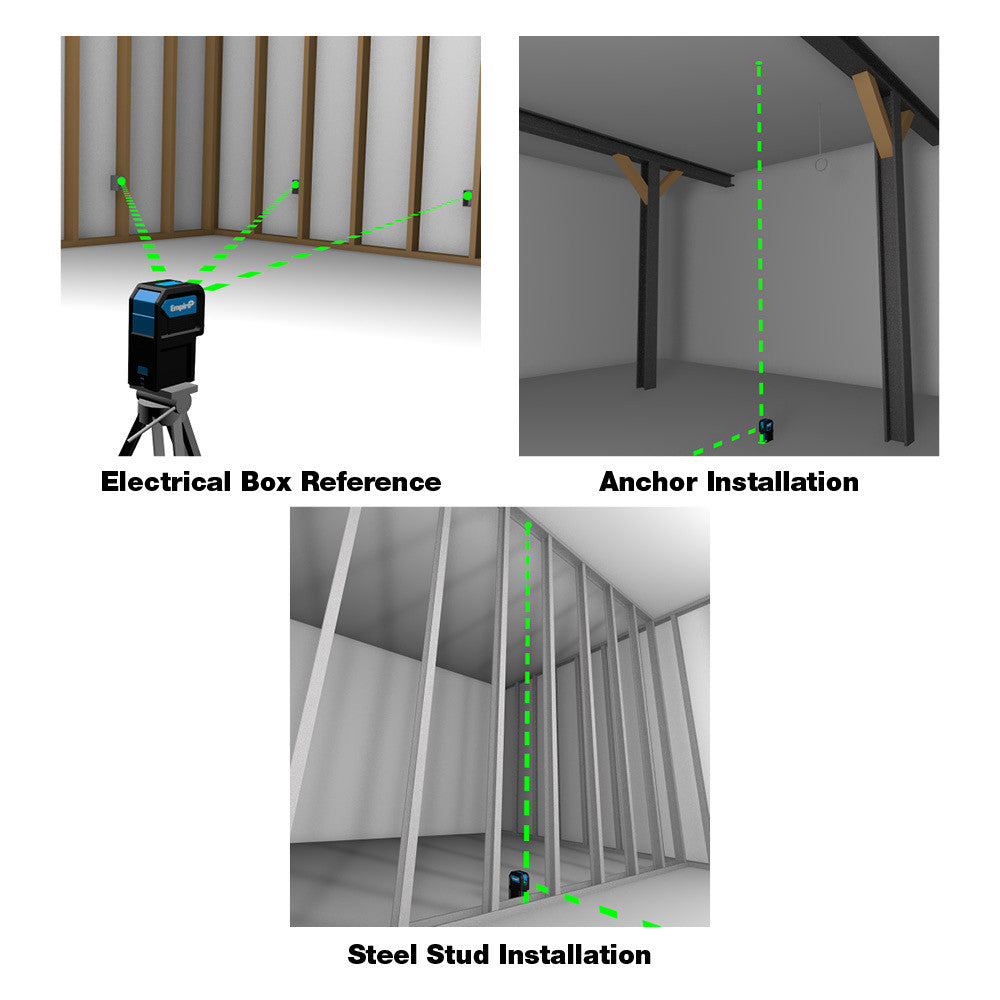 - empire level, green 3 point laser, elg3d laser, bright green laser, green laser level, construction laser level, 3 point laser level, magnetic laser level, battery powered laser, self-leveling