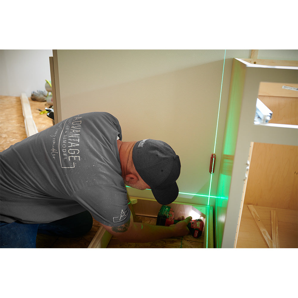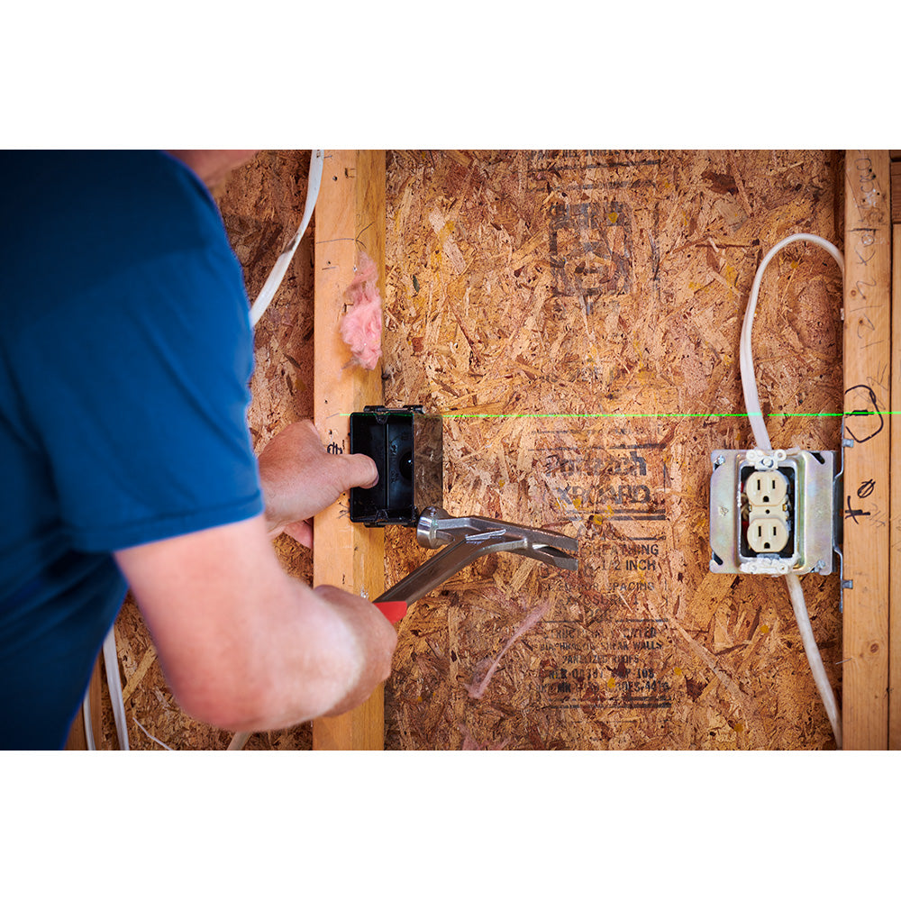 The Empire Green Self-Leveling Cross Line Laser provides a bright, durable, and compact, alkaline powered laser level solution that can assist in a variety of layout applications. With a working range of up to 75’, the bright green laser provides pronounced visibility when working even in well-lit conditions. The green line laser is powered by (4) AA Alkaline batteries for up to 15+ hours of continuous runtime, allowing for less downtime versus competitive alkaline laser solutions. This green line laser level also features a locking pendulum and rugged over-molded housing that withstands impact if dropped and maintains proper calibration. The green laser level has a fixed versatile 360° L-bracket with oversized rare earth magnets and rubber standoffs to fix the laser to a variety of materials without damaging finished surfaces. The Green Self-Leveling Cross Line Laser (eLGC) comes with a 1 Year Limited Lifetime Warranty.