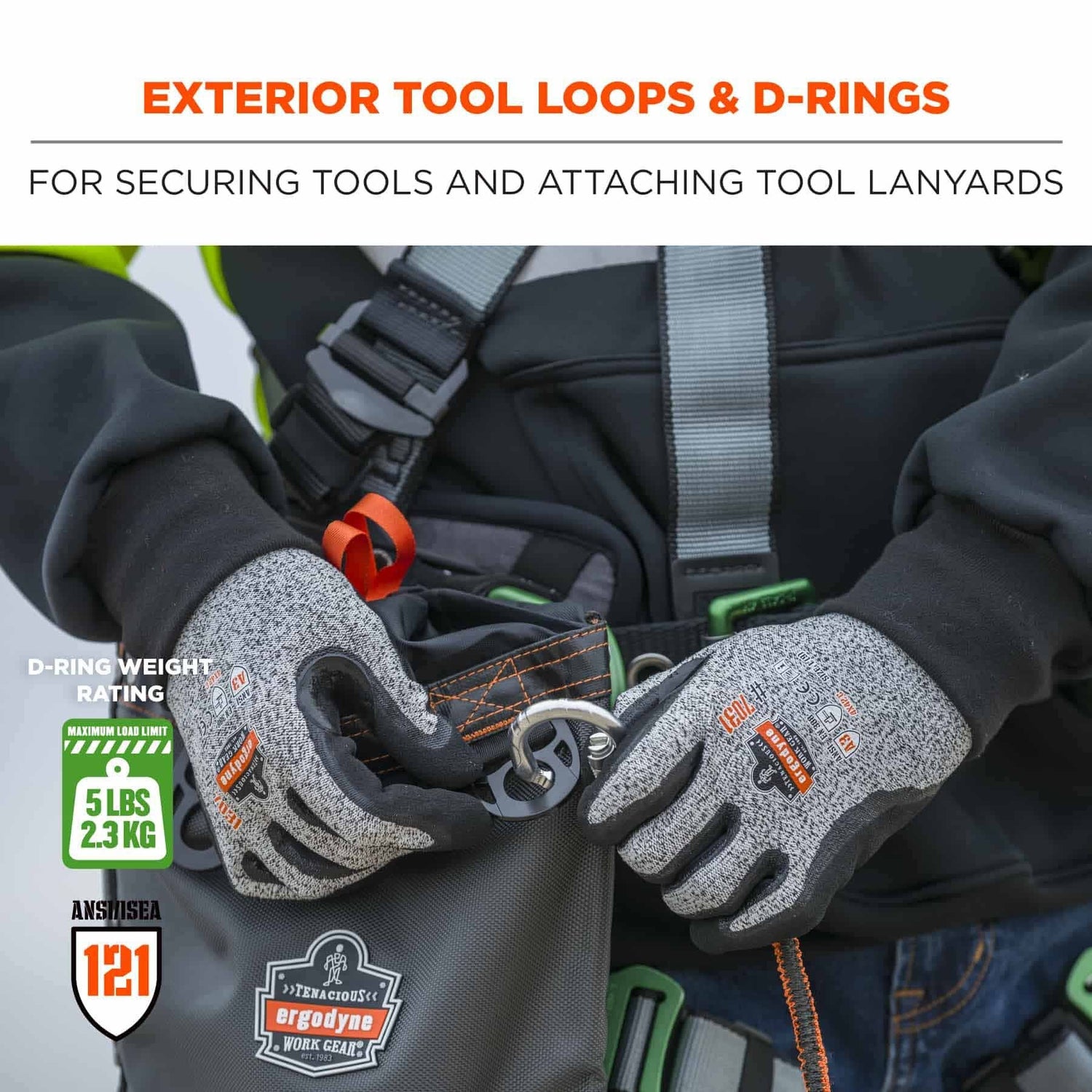 - TWO EXTERIOR D-RINGS – For attaching tool lanyards (5lb // 2.3kg max capacity)