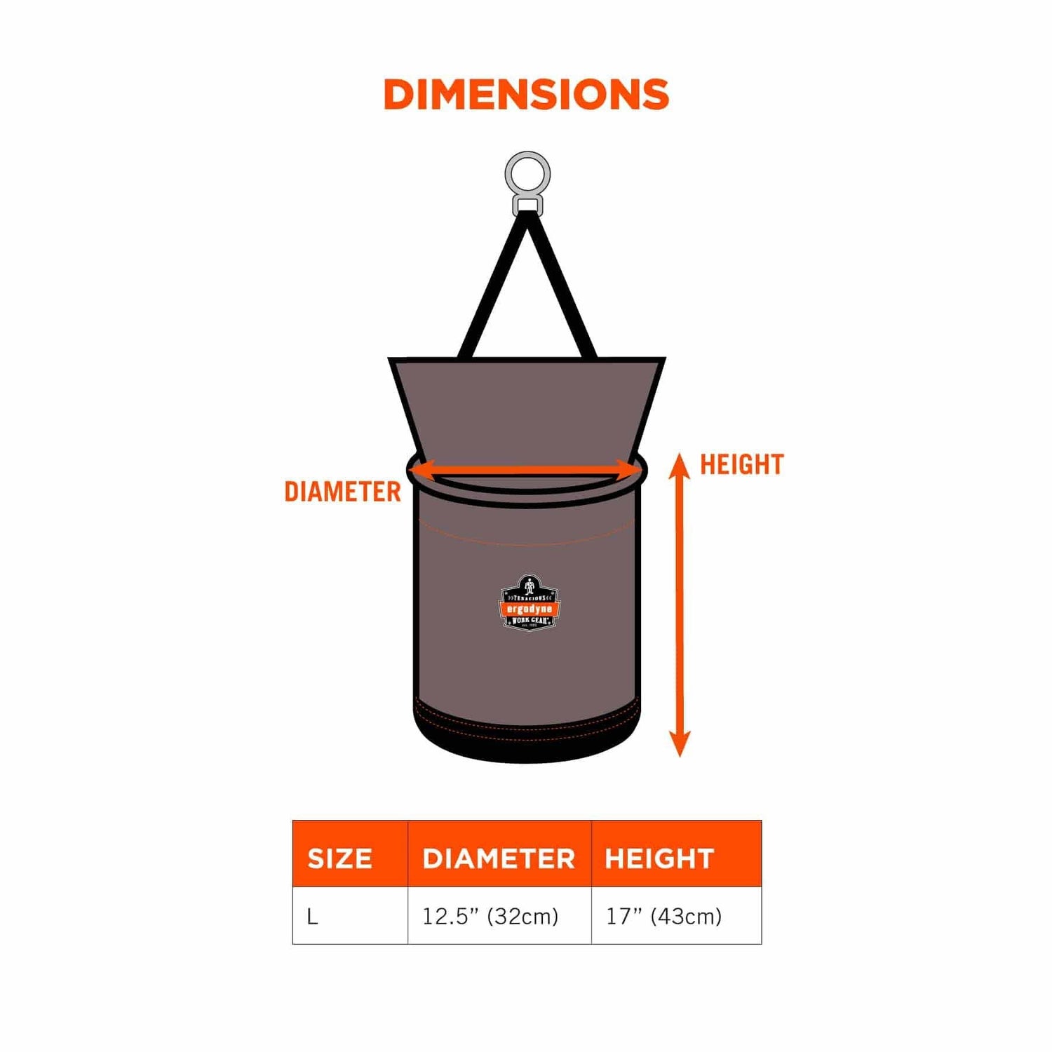 Ergodyne 15973 5973 L Gray Hoist Bucket - D-Rings - Zipper