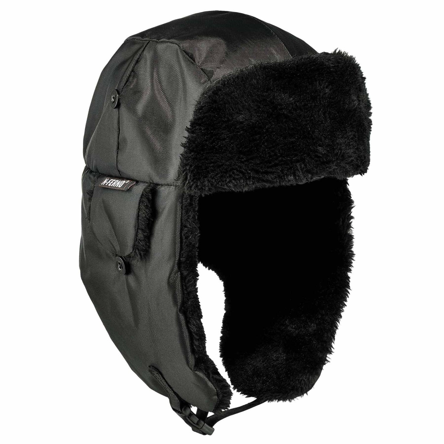 The N-Ferno 6802ZI Zippered Trapper Hat with Bump Cap Insert provides warmth from extreme cold, as well as lightweight protection from bumps, scrapes, bruises and other minor head injuries. Wear alone as a classic aviator hat or open the top zippered compartment to add the 8945 Universal Bump Cap Insert (included) for work in cramped spaces. This trapper hat features a windproof and water-resistant oxford nylon shell lined with 40 grams of 3M THINSULATE Insulation for comfortable warmth in extreme conditions. A water-resistant crown lining prevents sweat or moisture from being absorbed into the lining to keep you dry and warm. Ear flaps can be buttoned up for improved hearing through the small ear holes or down for increased warmth. A chin strap with YKK buckle makes for an adjustable fit, and a reflective accent on the back keeps workers safe and seen. Included with the trapper hat is a Skullerz 8945 Universal Bump Cap Insert.