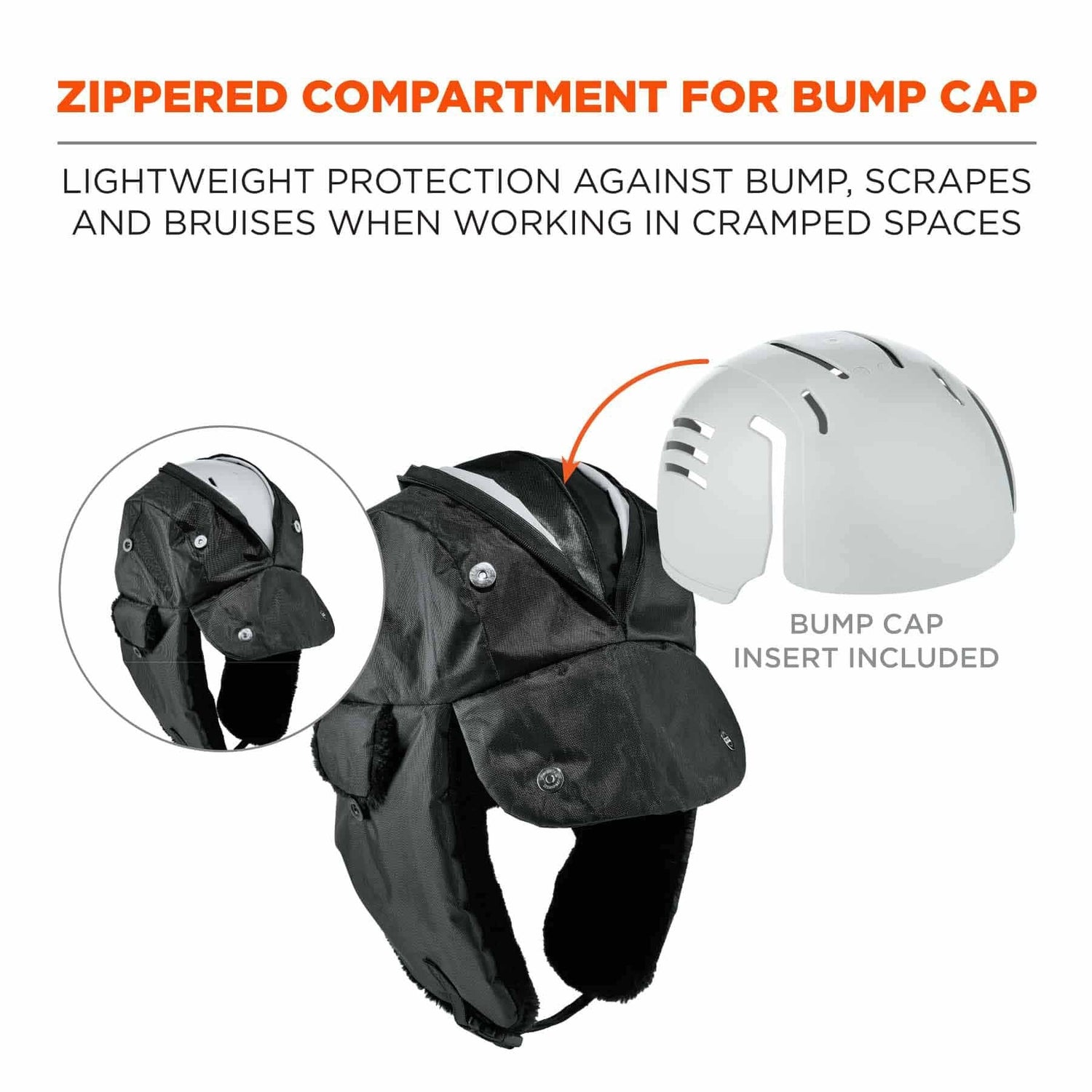 - ZIPPERED COMPARTMENT FOR BUMP CAP INSERT – Compatible with 8945 Universal Bump Cap Insert (included) for protection against bumps, scrapes, bruises and other minor head injuries