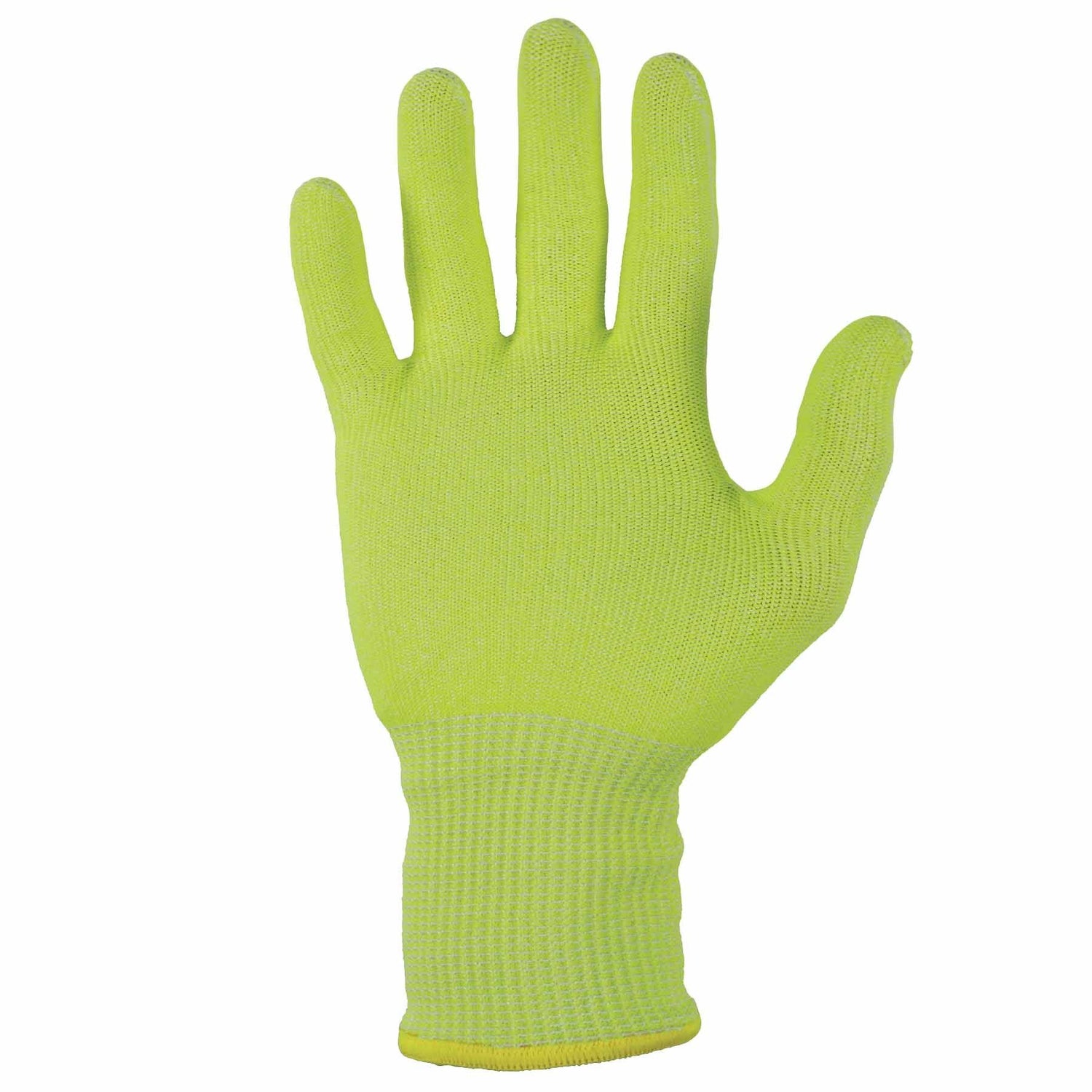 ProFlex 7040 ANSI A4 / EN 388 Level 5 Cut-Resistant Food Grade Gloves are made with breathable and non-irritating TenaLux yarn for maximum comfort that does not compromise protection. Unlike other anti-cut technologies, TenaLux yarn is constructed of high-performance polyethylene (HPPE) fibers to achieve a high level of cut resistance without glass or steel. These cut-proof gloves are tested to FDA CFR 175.300 for total extractive residues. This approval means the gloves will not contaminate food at any process point—including prepping, packaging and transporting. The lightweight knit of the TenaLux has 360-degree breathability and a cool-to-the-touch feel to prevent sweaty hands and overheating. The seamless knit cuff fits comfortably snug, keeping dirt and debris from getting into gloves. The hi-vis color enhances visibility for safety when working with knives and other sharp objects.
