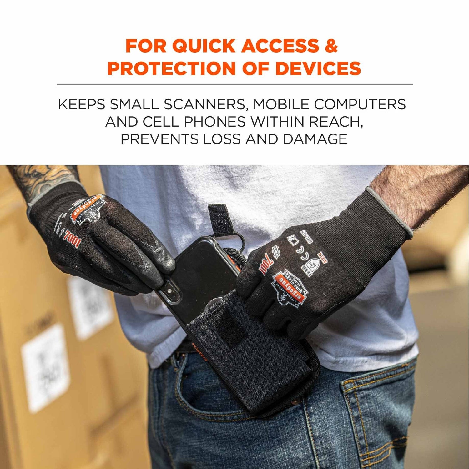 - QUICK, SECURE ACCESS – Prevents costly drops, keeps handle-less barcode scanners/mobile computers close and ready