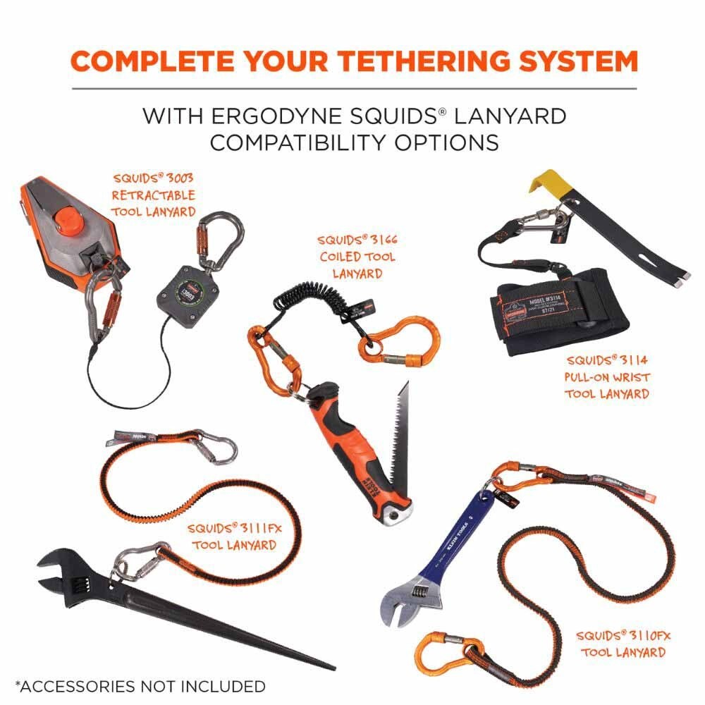 The Squids 3785 Split Ring Tool Attachment (10-pack) is designed to create a larger retrofit attachment point on tools with small captive holes for tethering tools up to 2lbs // 0.9kg, preventing dropped or falling objects from occurring on the job. Connection points for tool lanyards can be tricky to find, especially on smaller hand tools with small captive holes. While working at-heights, it is important to tether tools as part of your overall fall protection plan, but the lack of these connection points can make that difficult.