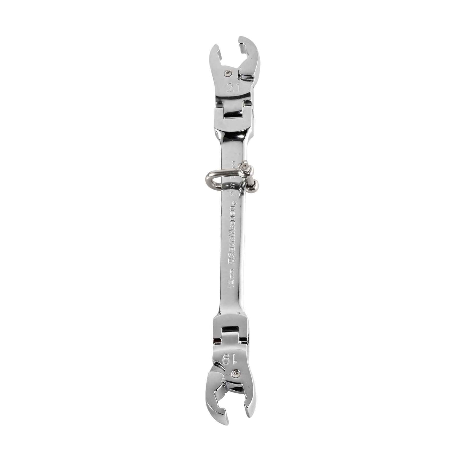 Stainless steel U shaped shackles connect to waisted/necked tools (tapered mid sections) or tools with captive holes, creating clean, secure attachment points for tethering.