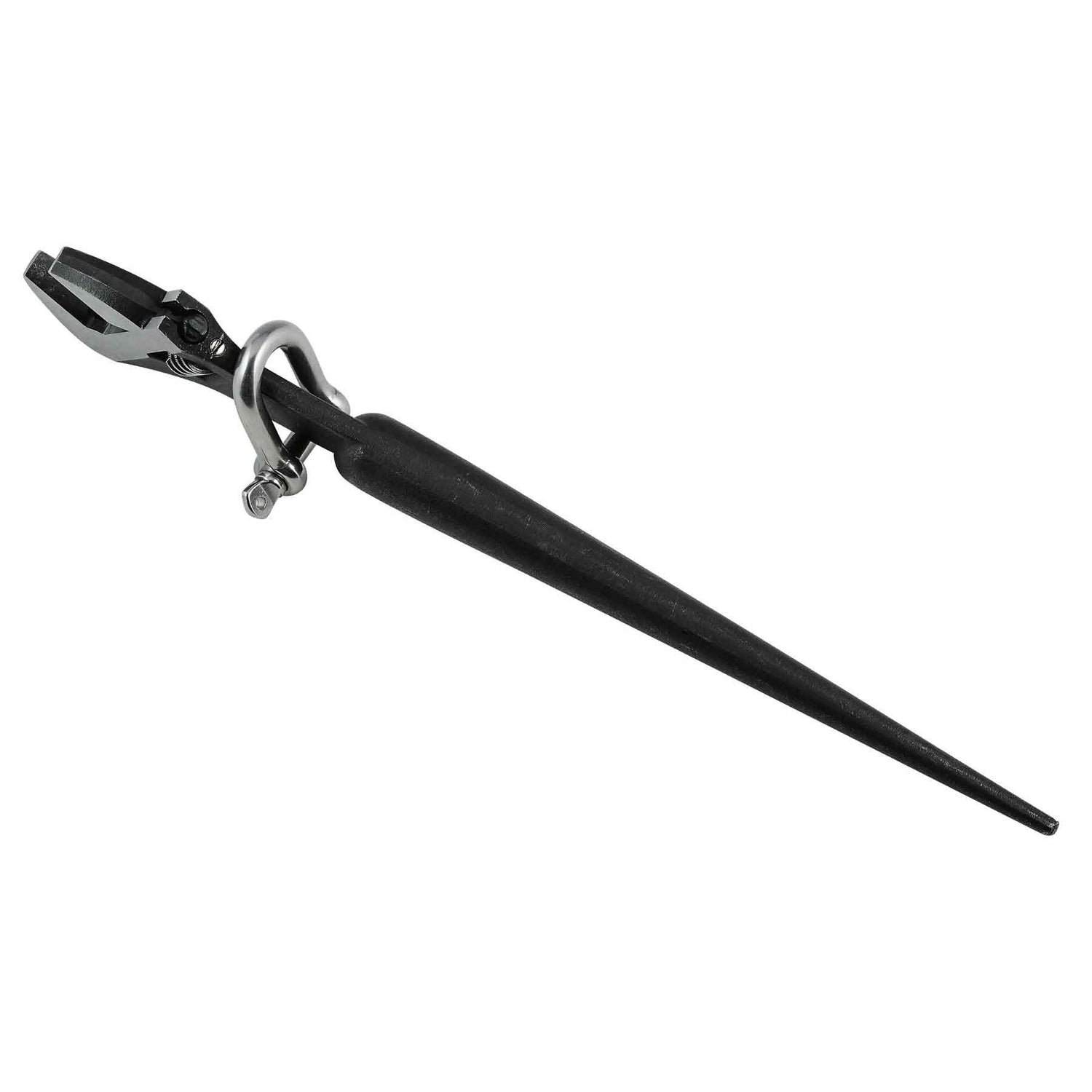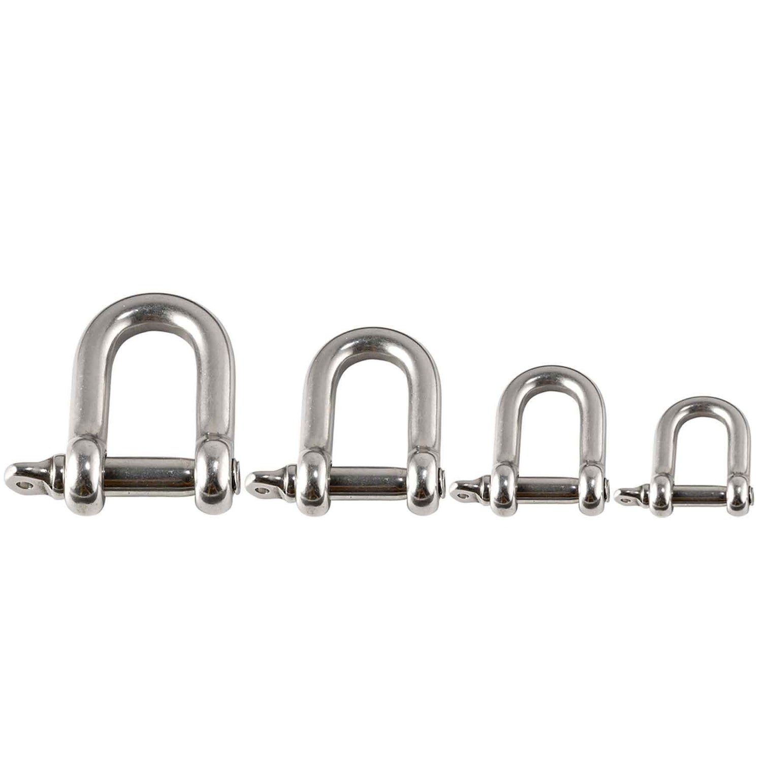 Stainless steel U shaped shackles connect to waisted/necked tools (tapered mid sections) or tools with captive holes, creating clean, secure attachment points for tethering.