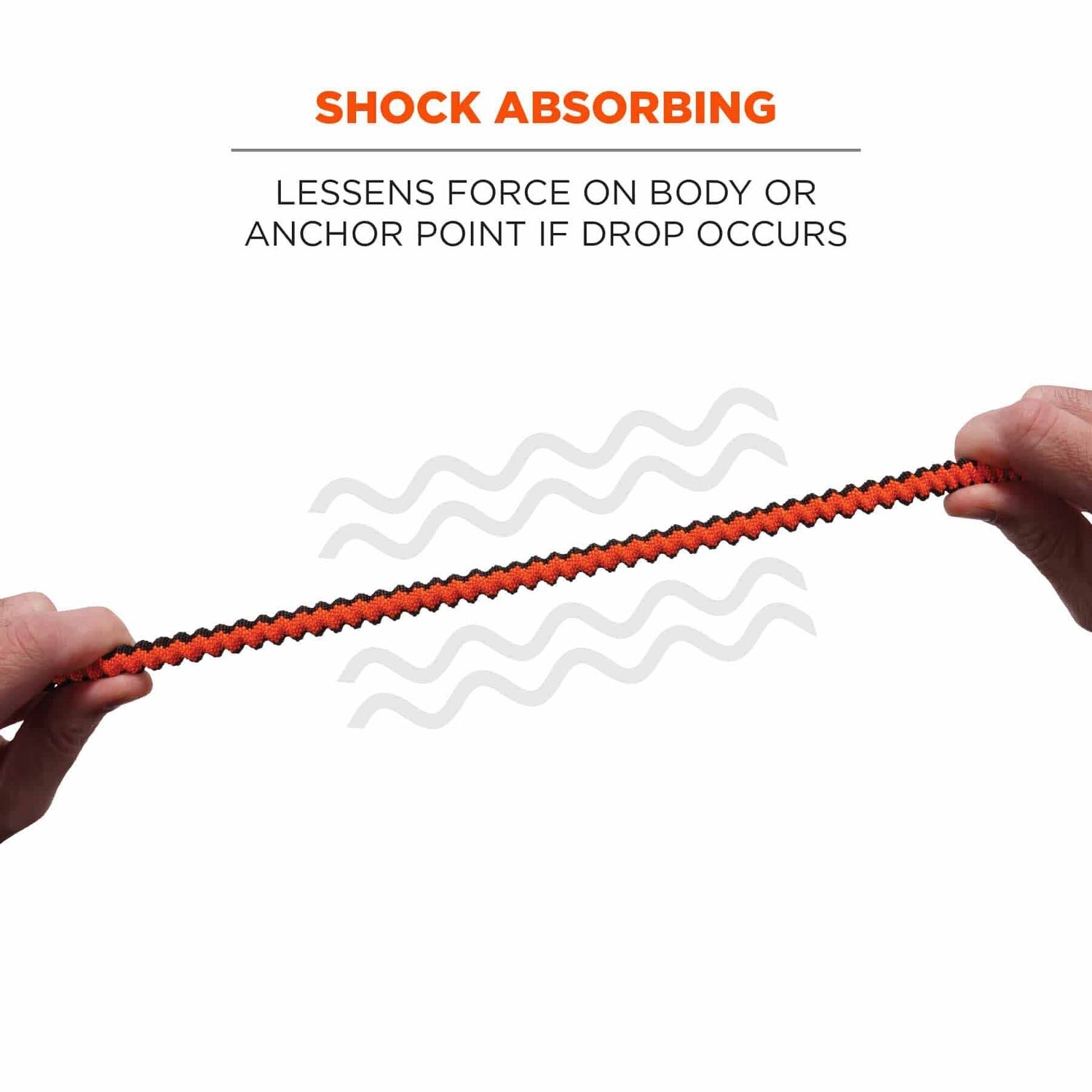 - SHOCK-ABSORBING – Design reduces the dynamic force on the body or other anchor point if drop occurs