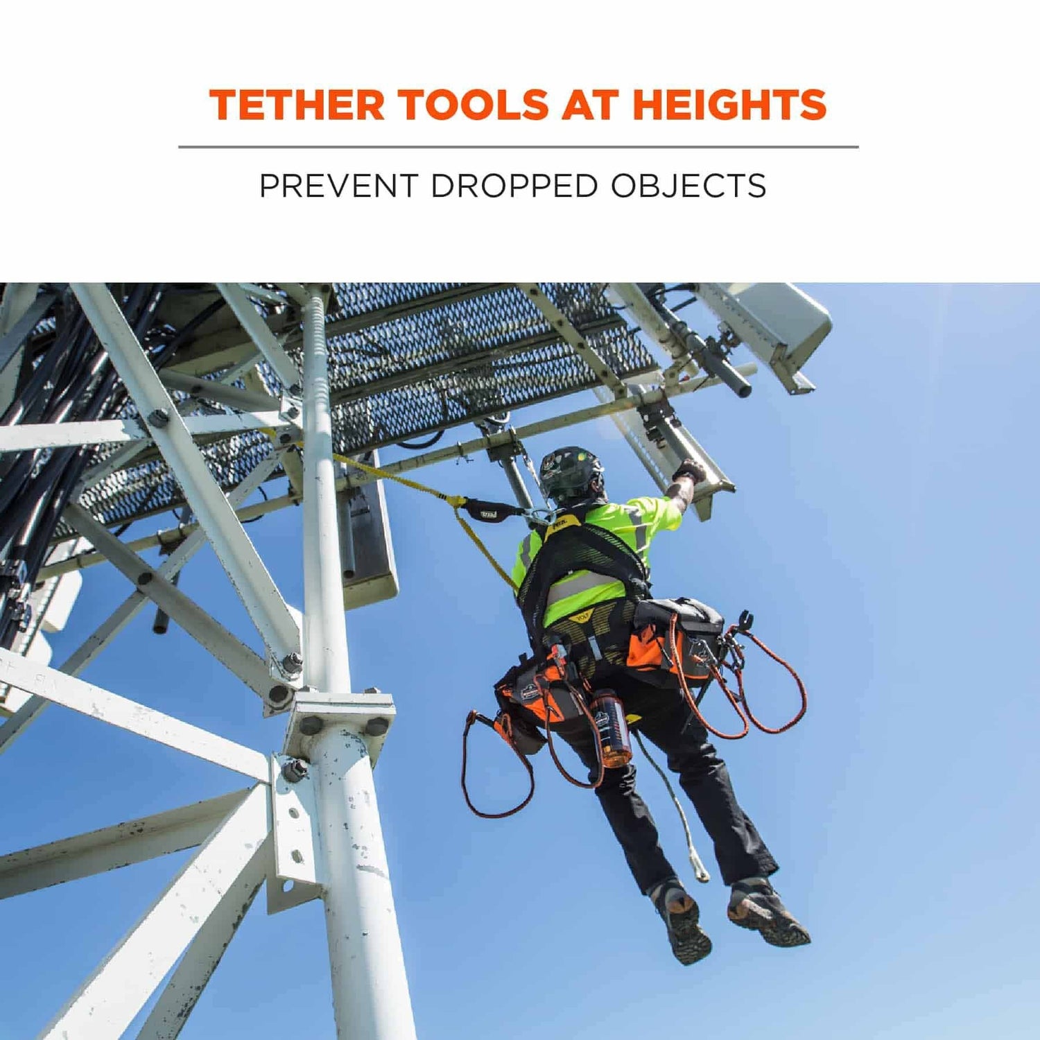 The Squids 3111F(x) Tool Lanyard features a stainless-steel auto-locking carabiner with a captive eye on both ends to tether tools up to 15lb / 6.8kg and prevent dropped or falling objects from occurring on the job. This shock-absorbing lanyard is designed and tested to reduce the force on your body if a drop occurs by absorbing the energy transmitted through the tool lanyard. This design prevents the tool from pulling the user down with it by reducing the shock load, protecting those above as well as those below. The low-profile design reduces snag hazards and is made from a durable 1680-denier polyester elastic-blended webbing that extends from 38 - 48in / 96 - 122cm. The high-strength 3-ply nylon stitching secures connecting ends for lasting durability. This tool tether is third-party certified to 15lb / 6.8kg maximum capacity and meets the ANSI/ISEA 121-2018 standard.