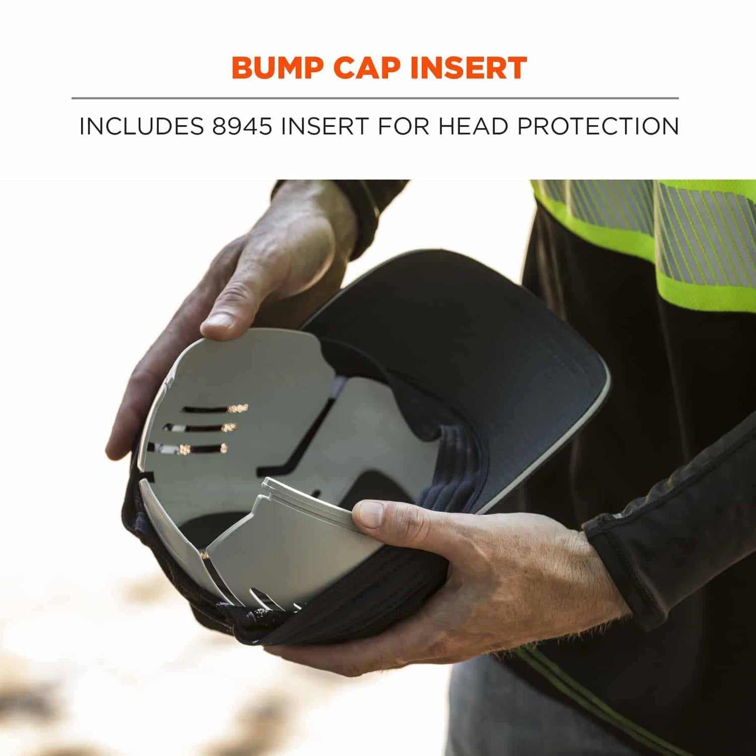 Ergodyne 23402 8946 Hat w/ Insert Black Baseball Cap + Bump Cap Insert