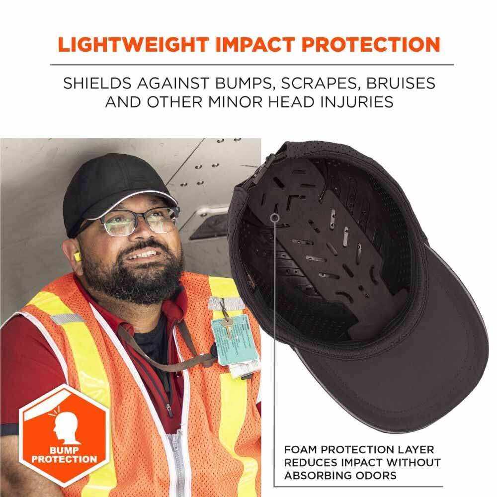Ergodyne 23452 8947 XL/2XL Black Lightweight Baseball Hat Bump Cap Insert