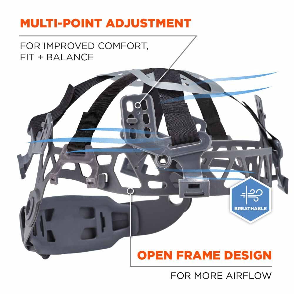 • BREATHABLE - Adjustable venting and flexible open frame with 6-point suspension improves air circulation