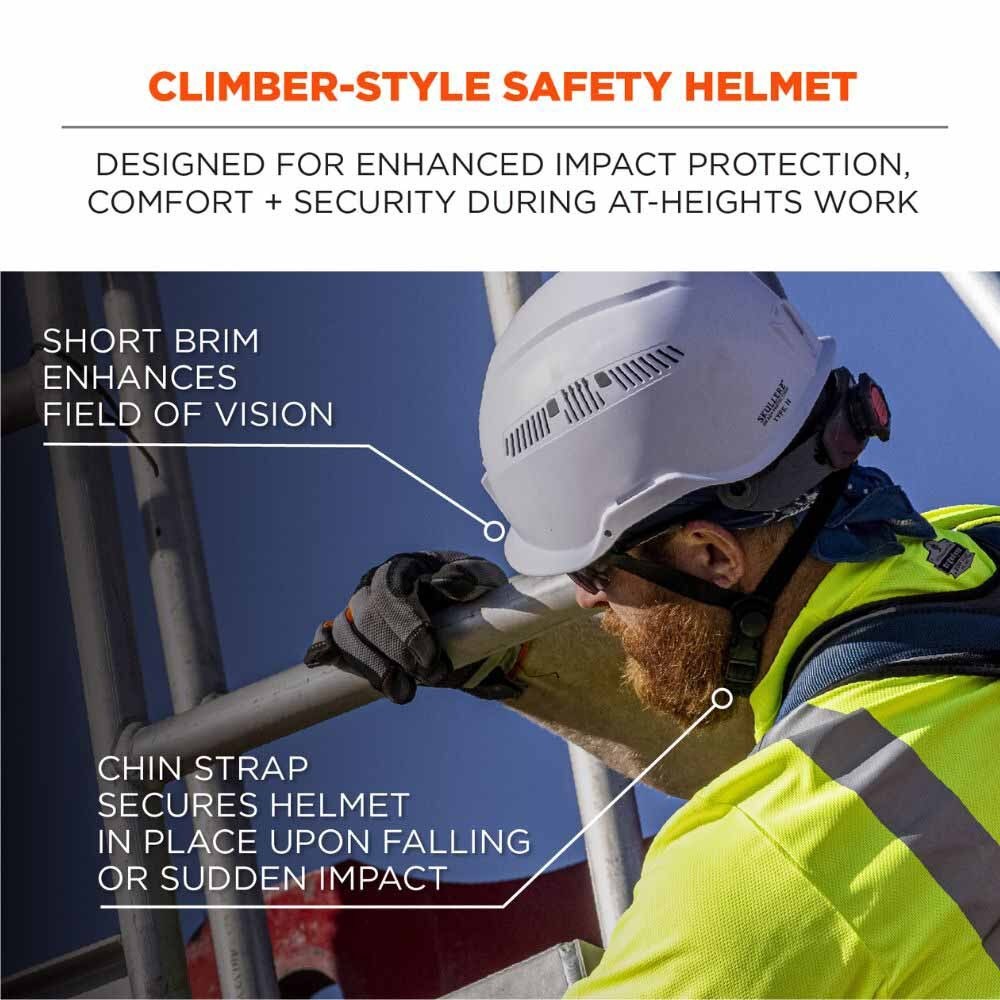 • CHIN STRAP INCLUDED - Secures helmet in place upon falling or sudden impact/movement and meets ANSI Z89.1-2014 Type 2 and EN12492 design, strength and effectiveness requirements