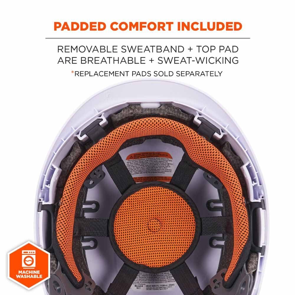 • ALL-DAY COMFORT - Includes removable hard hat sweatband and top pad made of breathable, sweat-wicking and odor-resistant, machine washable materials