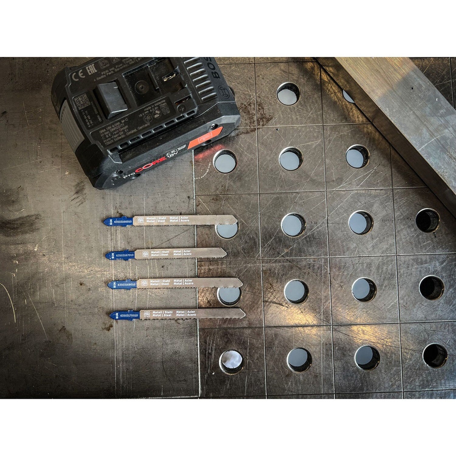 Professional Top Line bi-metal jigsaw blades for metal deliver straight cuts and long service life in sheet metal, stainless steel, INOX, and sheet steel. 5 pack.