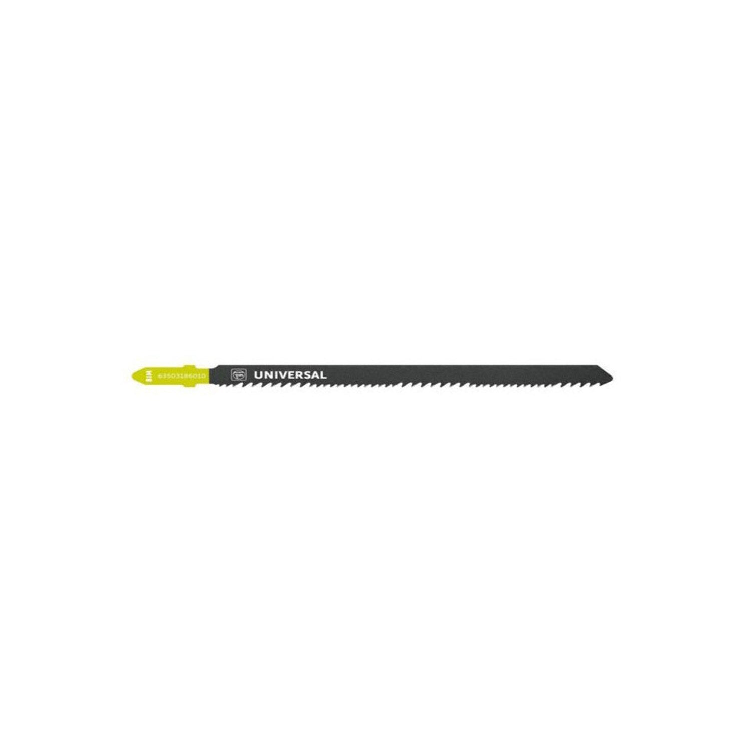 Professional Top Line jigsaw blades for universal use in wood and metals, delivering straight cuts with an extra-long blade. 10-14 TPI, chrome-vanadium T-shank design. Pack of 5.