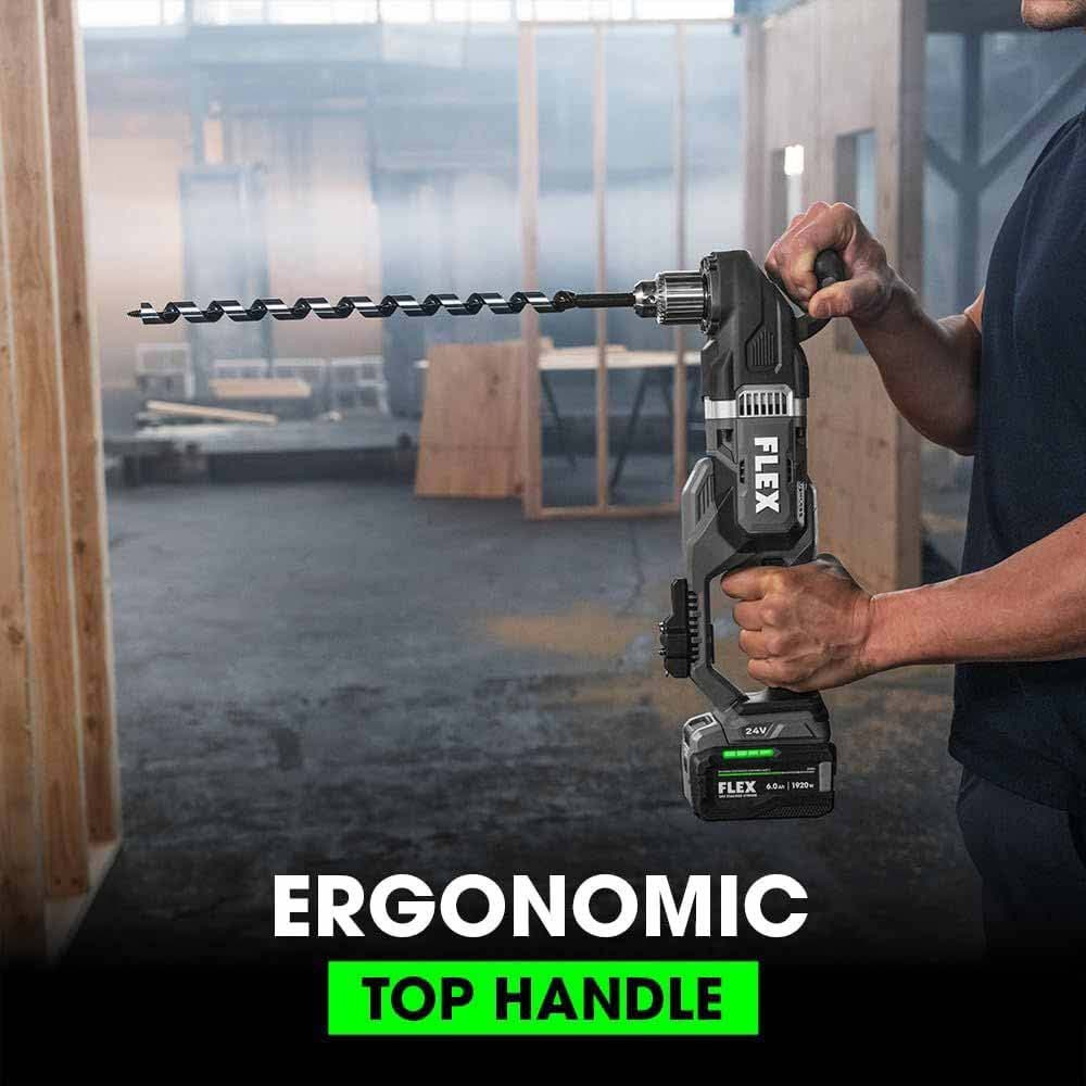 Punch through stud after stud with 1,680 inch-pounds of torque using the FLEX 24V Compact Right Angle Drill when running conduit.