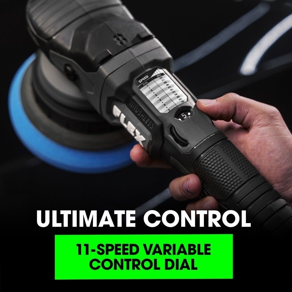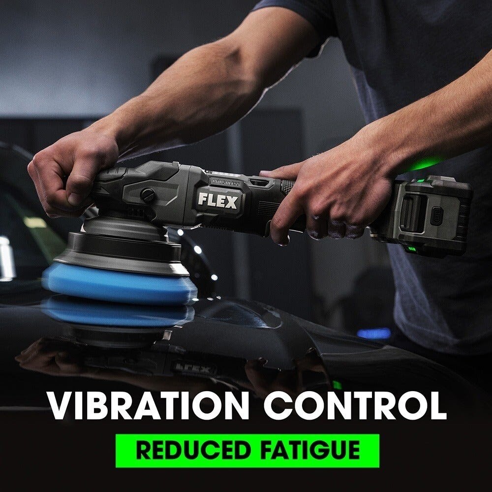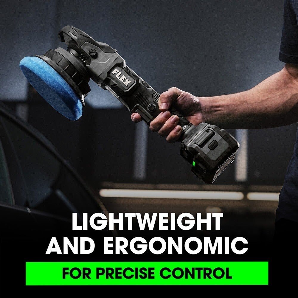 The FLEX 24V Gear-Driven Orbital Polisher Kit offers unmatched battery power, runtime, and fast charging, featuring a lightweight ergonomic design and vibration control for reduced fatigue.