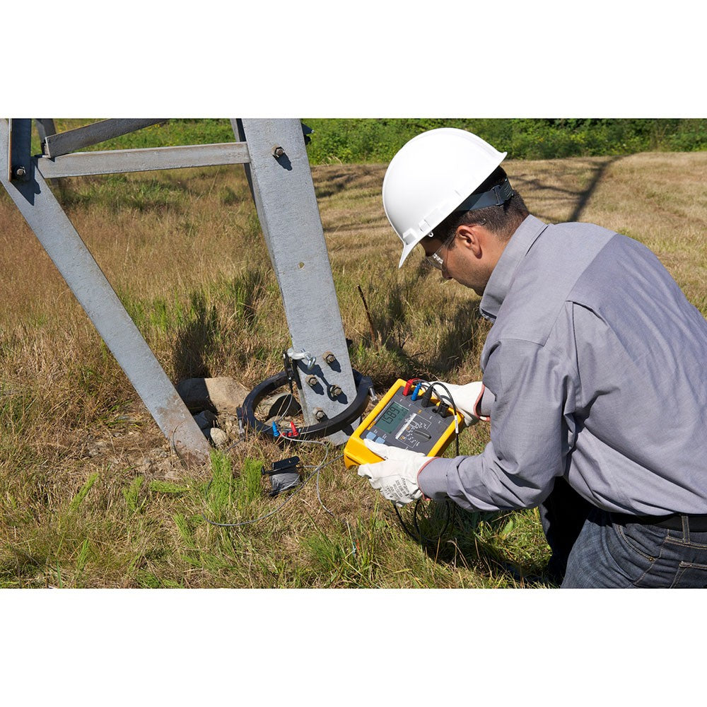 The Fluke 1625-2 earth ground tester measures earth ground loop resistances using only clamps, only stakes, or one clamp and stakes. With the stakeless test method, the Fluke 1625-2 is able to measure earth ground loop resistances for multi-grounded systems using only current clamps. This technique eliminates the dangerous, and time consuming job of disconnecting parallel grounds, and finding suitable locations for auxiliary ground stakes. This allows you to perform earth ground tests in places you've not considered before, such as inside buildings, on power pylons, or anywhere you don't have access to soil.