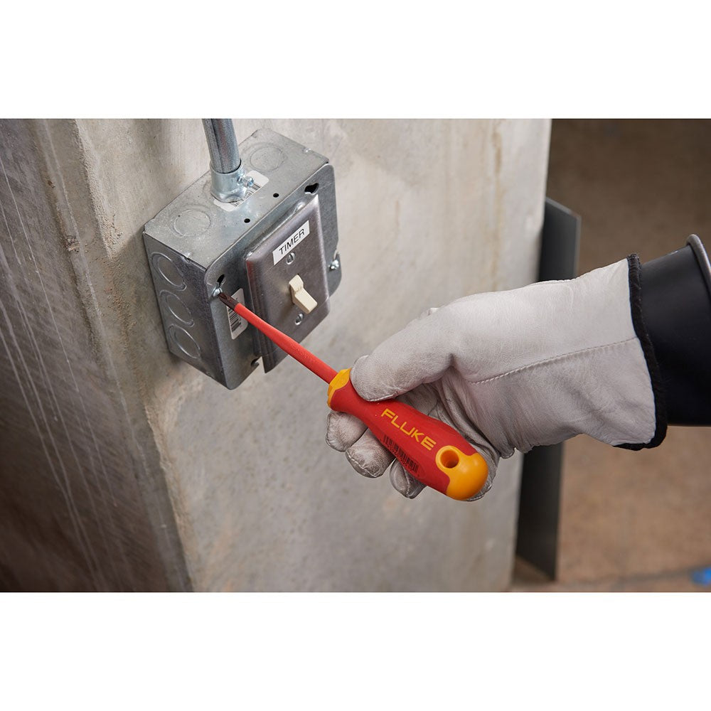 The Fluke IPHS2 Insulated Phillips Screwdriver, #2, 4" 1000 V will always feel right. From the moment you first put it in your hand, you're ready to go to work. The screwdriver gives you maximum torque and a comfortable grip that reduces fatigue. Take everything that makes Fluke test tools great, and put that into insulated hand tools. That's what you will have on your toolbelt.