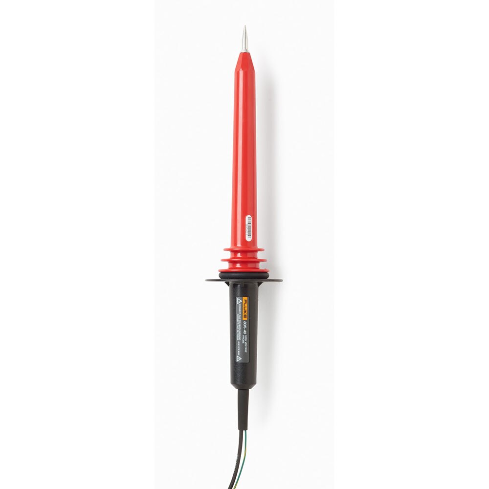 The 80K-40 is a high voltage probe designed to extend the voltage measuring capability of an AC/DC voltmeter to 40,000 volts peak AC or DC Overvoltage Category I. This means the probe can only be used to make measurements on energy limited cIRcuits within.