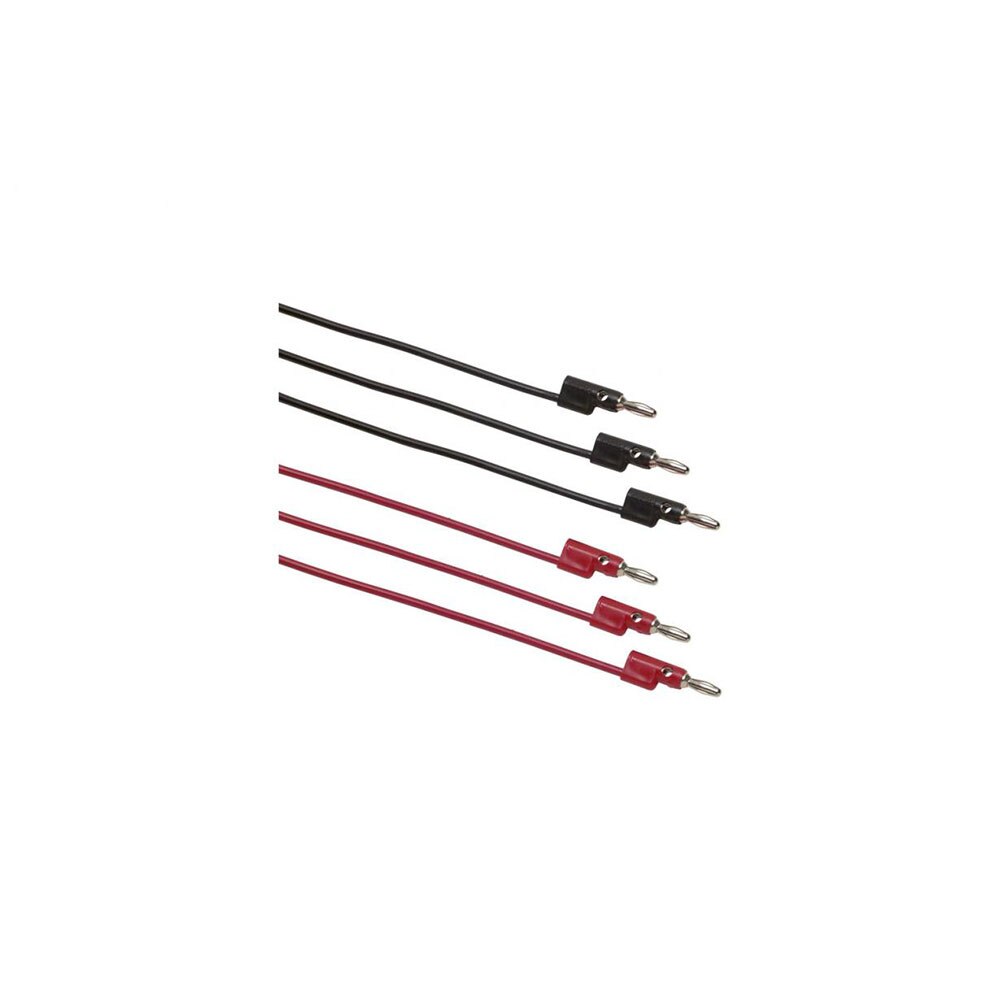 - 3 sets (red and black pairs) of multi-stacking 4 mm banana plug patch cords