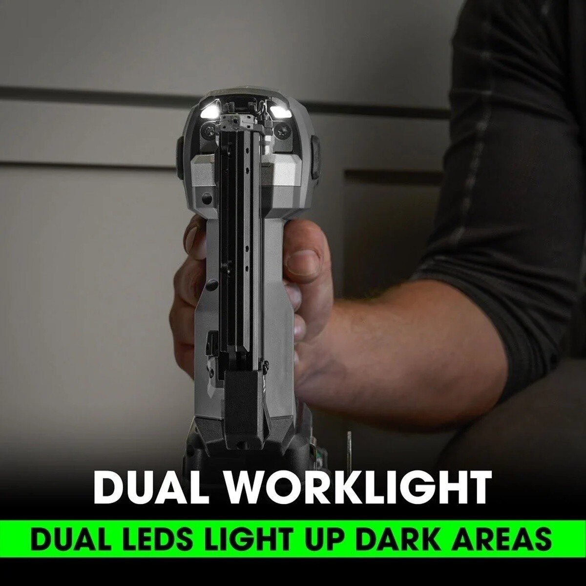 This 23 gauge cordless pin nailer delivers compact, lightweight performance for precision fastening. Tool-free depth adjustment helps you dial in consistent results, while dual LED worklights improve visibility in dark work areas.