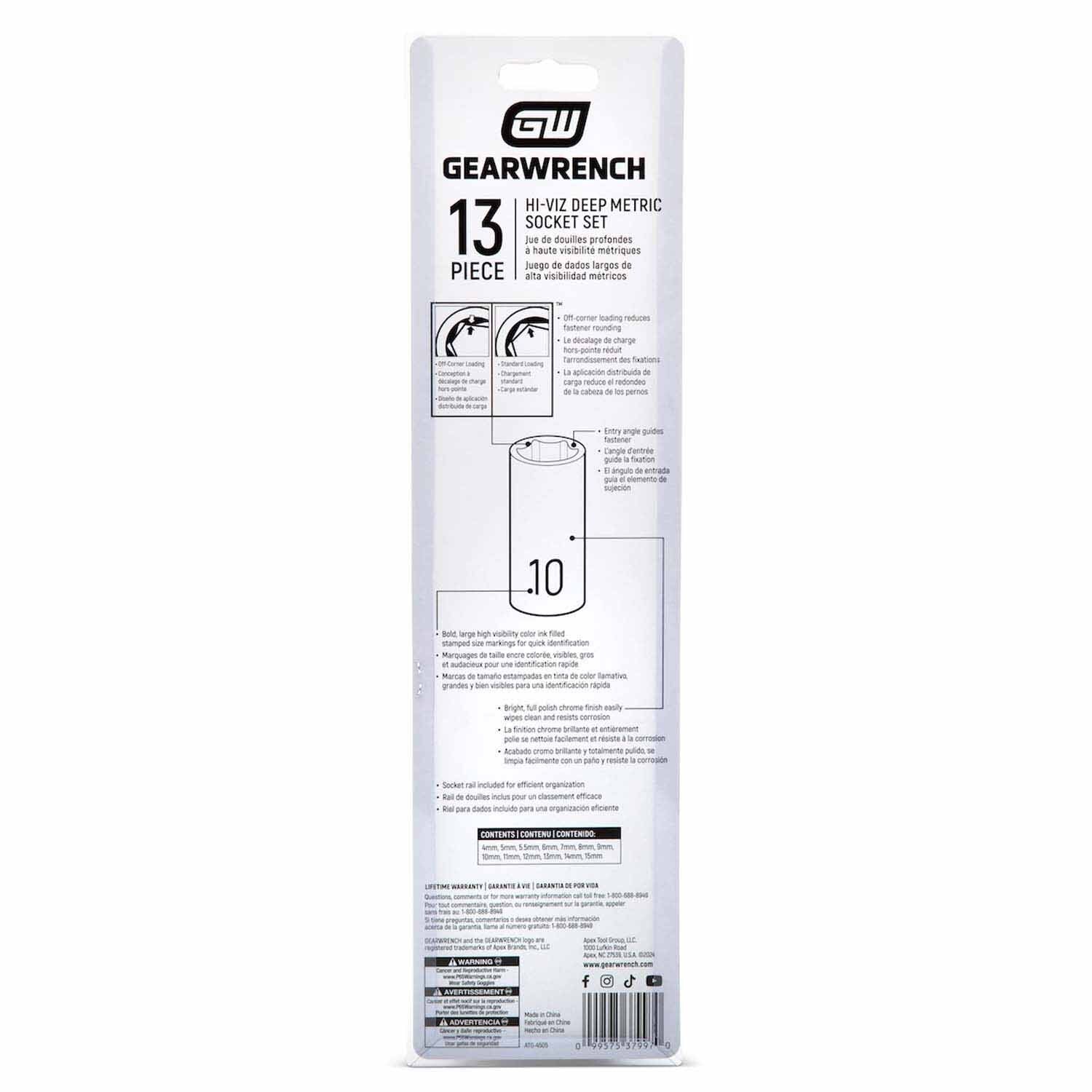 GearWrench 80304H 13 Piece 1/4" Drive 6 Point Metric Hi-Viz Deep Socket Set
