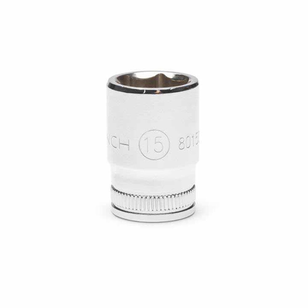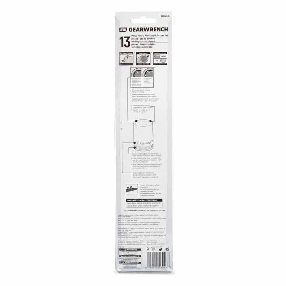 Living up to the reputation of the brand, GEARWRENCH full polish chrome sockets deliver unprecedented speed, strength, and access to almost any job. Large, hard-stamped markings allow for easy identification and can be easily recognized as SAE (double line) or metric (knurled line). Additionally, the off-corner loading design puts force on the flats of fasteners for improved durability and reduced fastener rounding. Available in standard, mid-length, and deep lengths, the GEARWRENCH sockets will get the job done.
